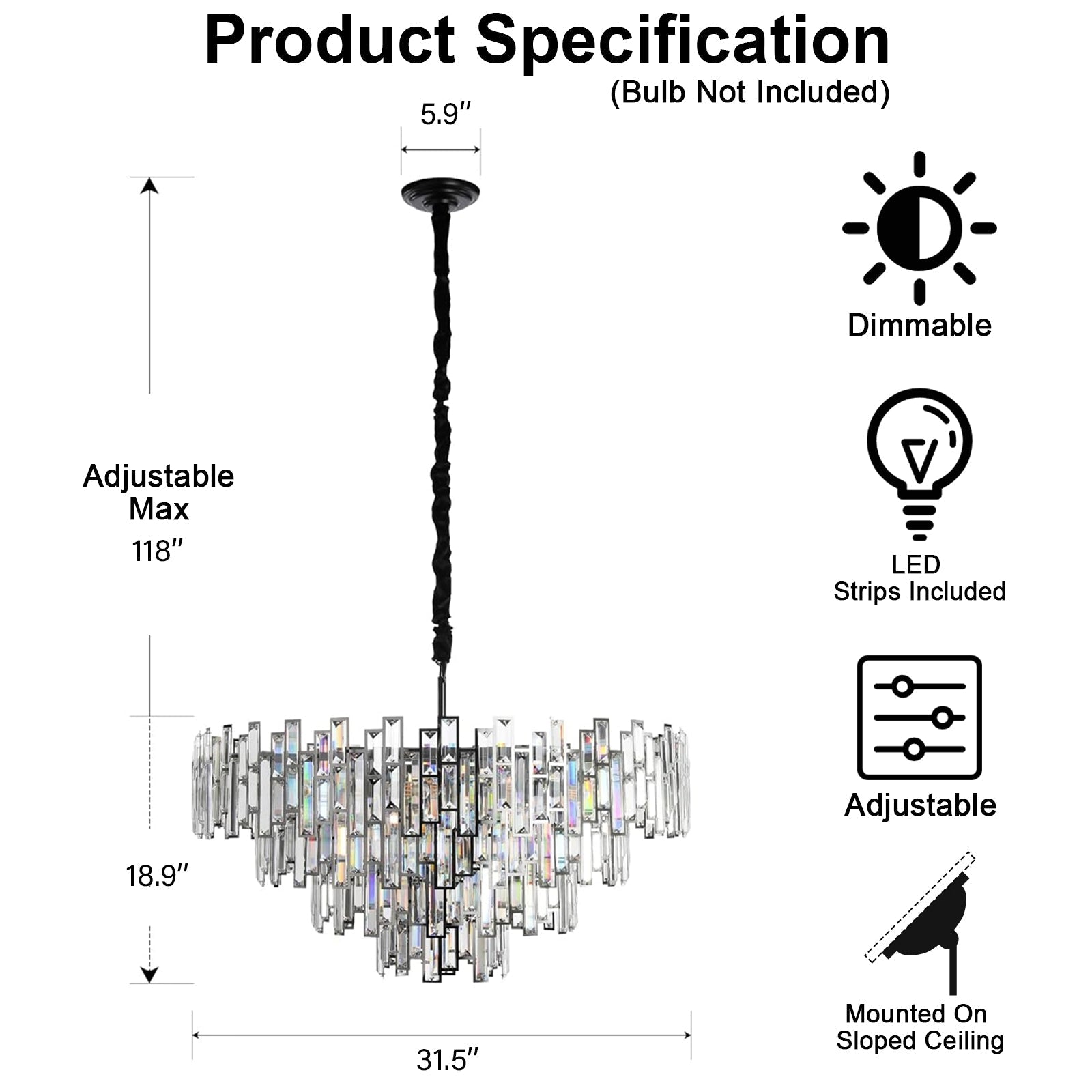 Ideal for creating a glamorous centerpiece in entryways, foyers, hallways, staircases, living rooms, and dining areas. Adjustable height allows customization for ceilings of different heights. Perfect for both home and upscale commercial spaces.