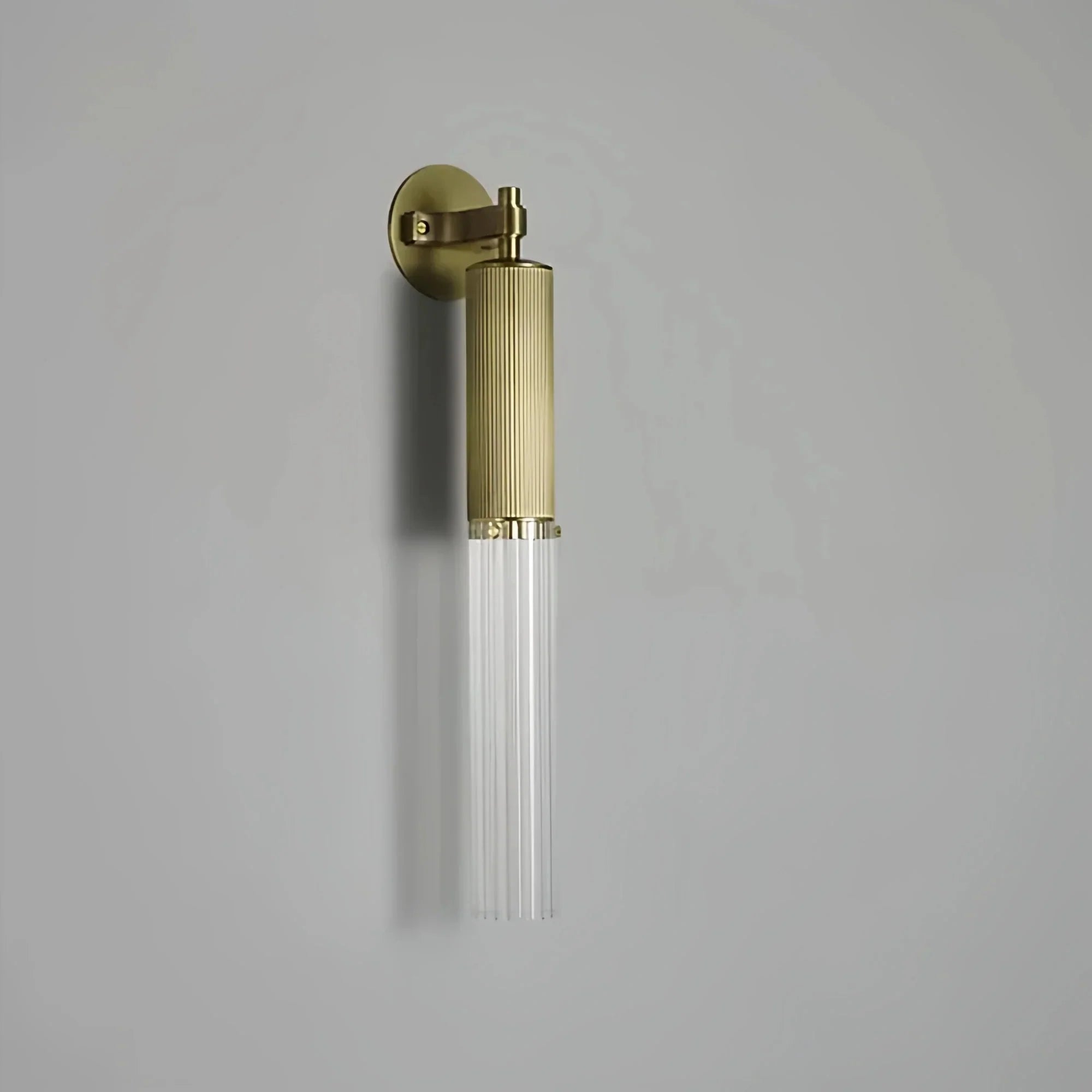 The Flume Wall Sconce's brass backplate sets the stage for the bowed, angled arm that suspends the cylindrical bulb, giving any space an intimate look. Tubular glass allows light to diffuse effortlessly, adding a stunning glow to walls. The table lamp's slim profile is both illuminating and space-saving. The entire metal portion of the table lamp features an elegant crinkle design.