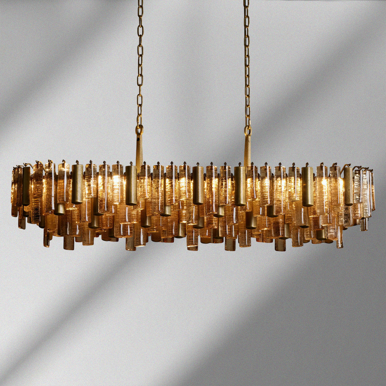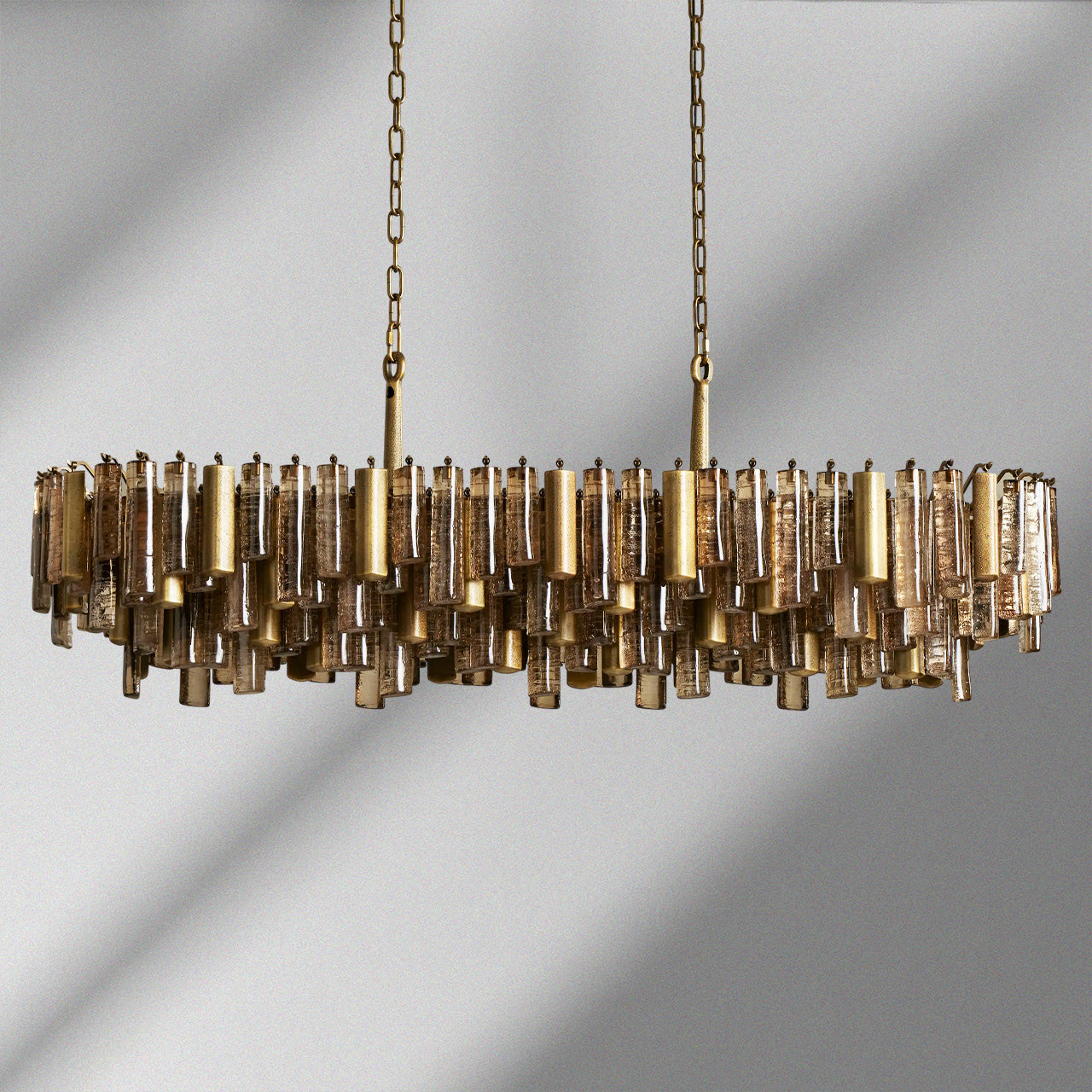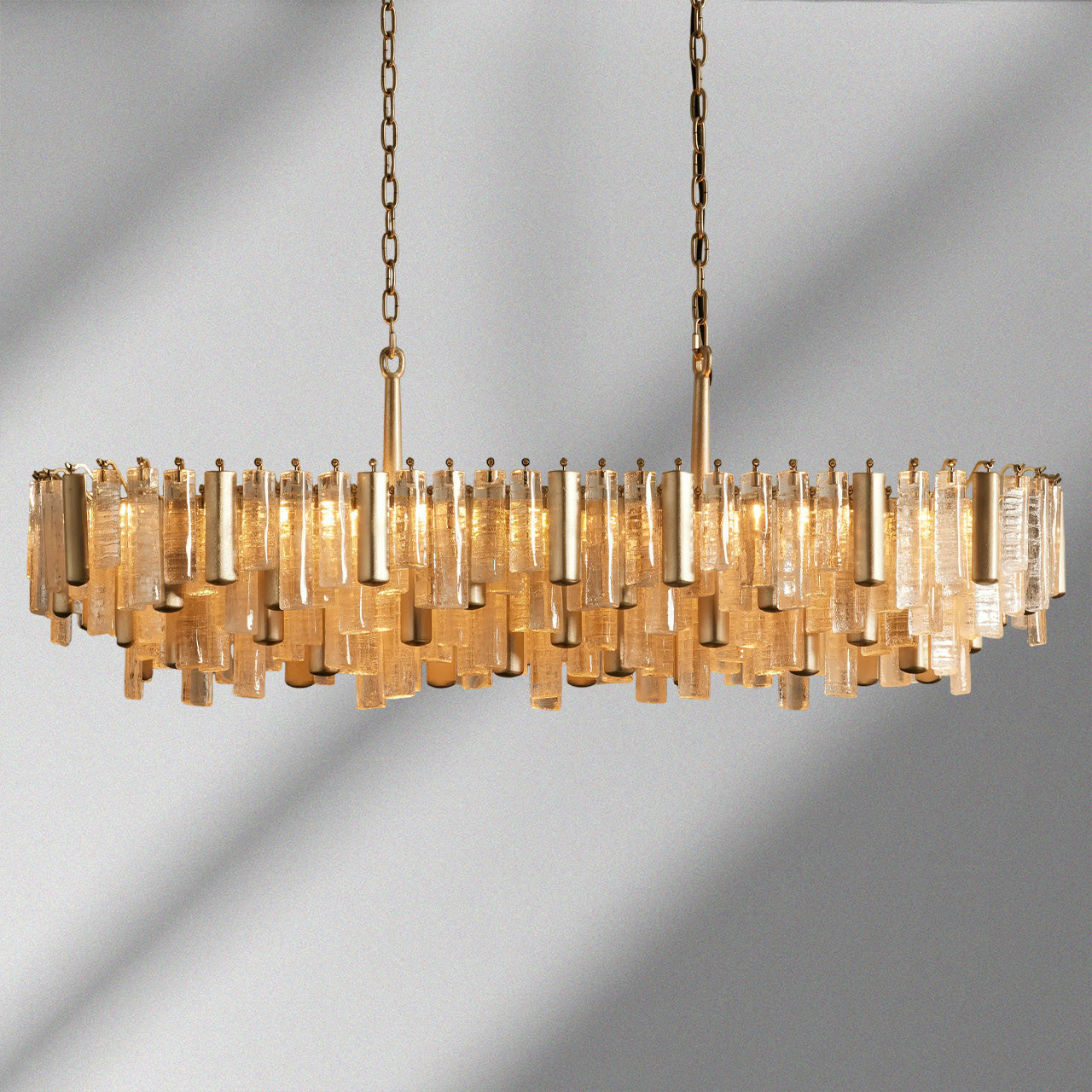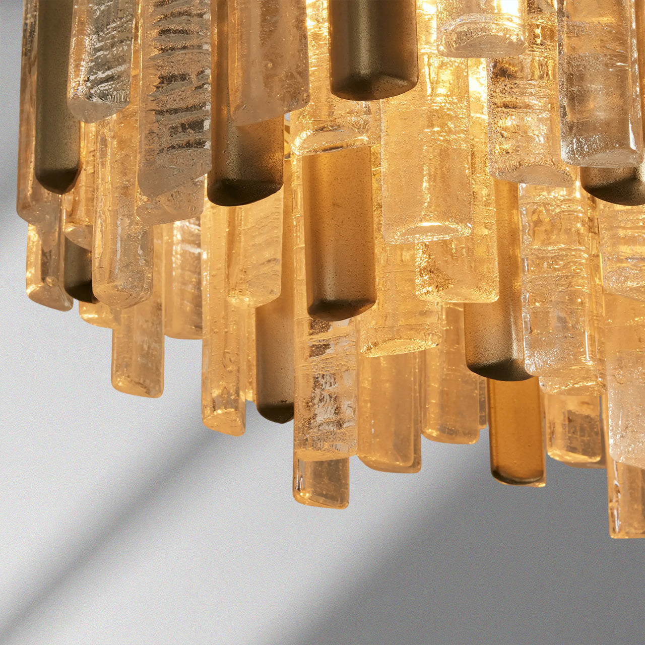 Inspired by traditional Italian Murano fixtures, our Neve Collection layers cast glass and metal into a richly textural, light-catching form. Offered in burnished brass with bronze glass or champagne silver with clear glass, each mixed-material piece glows with sculptural depth and artisanal character.
