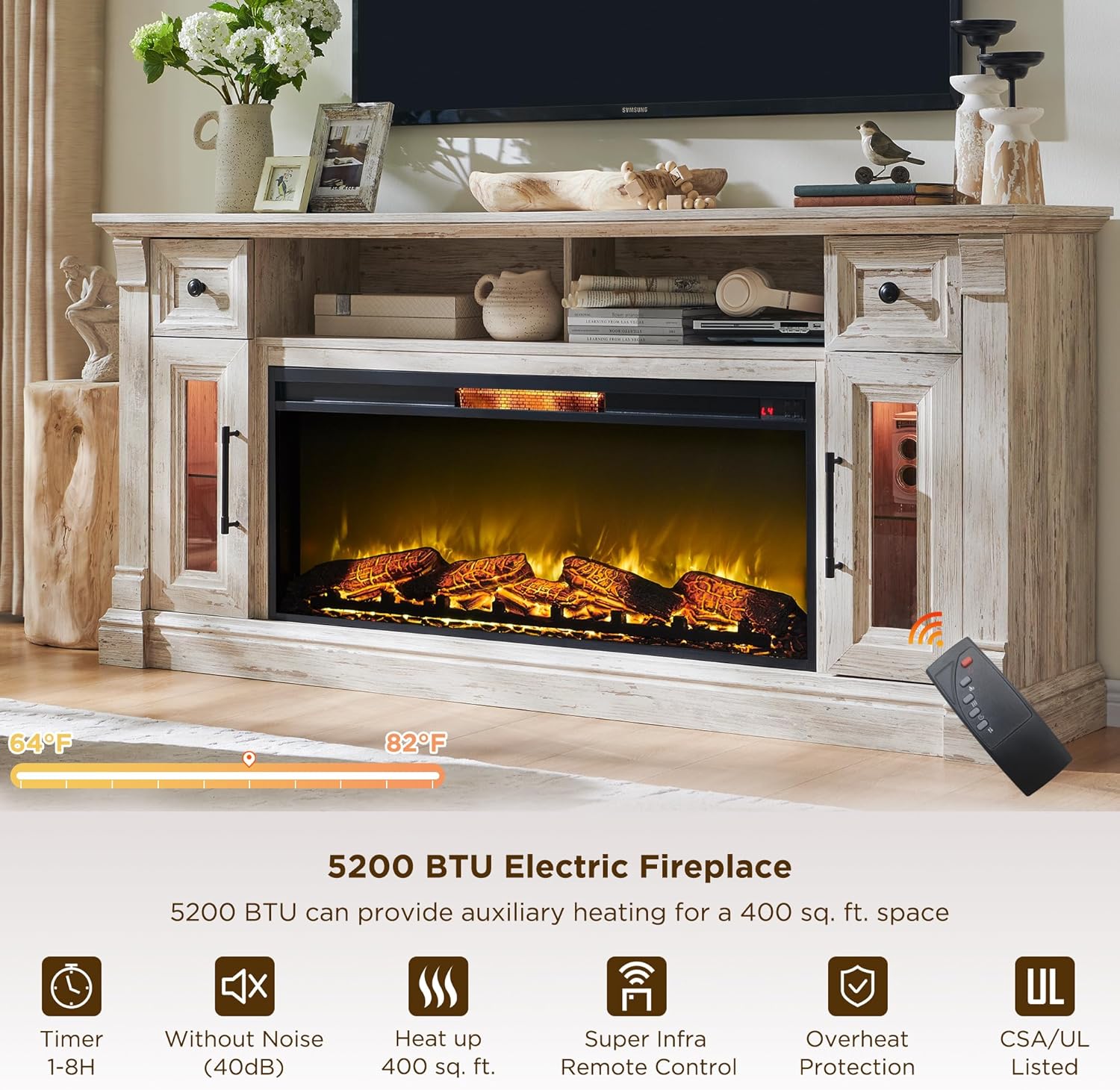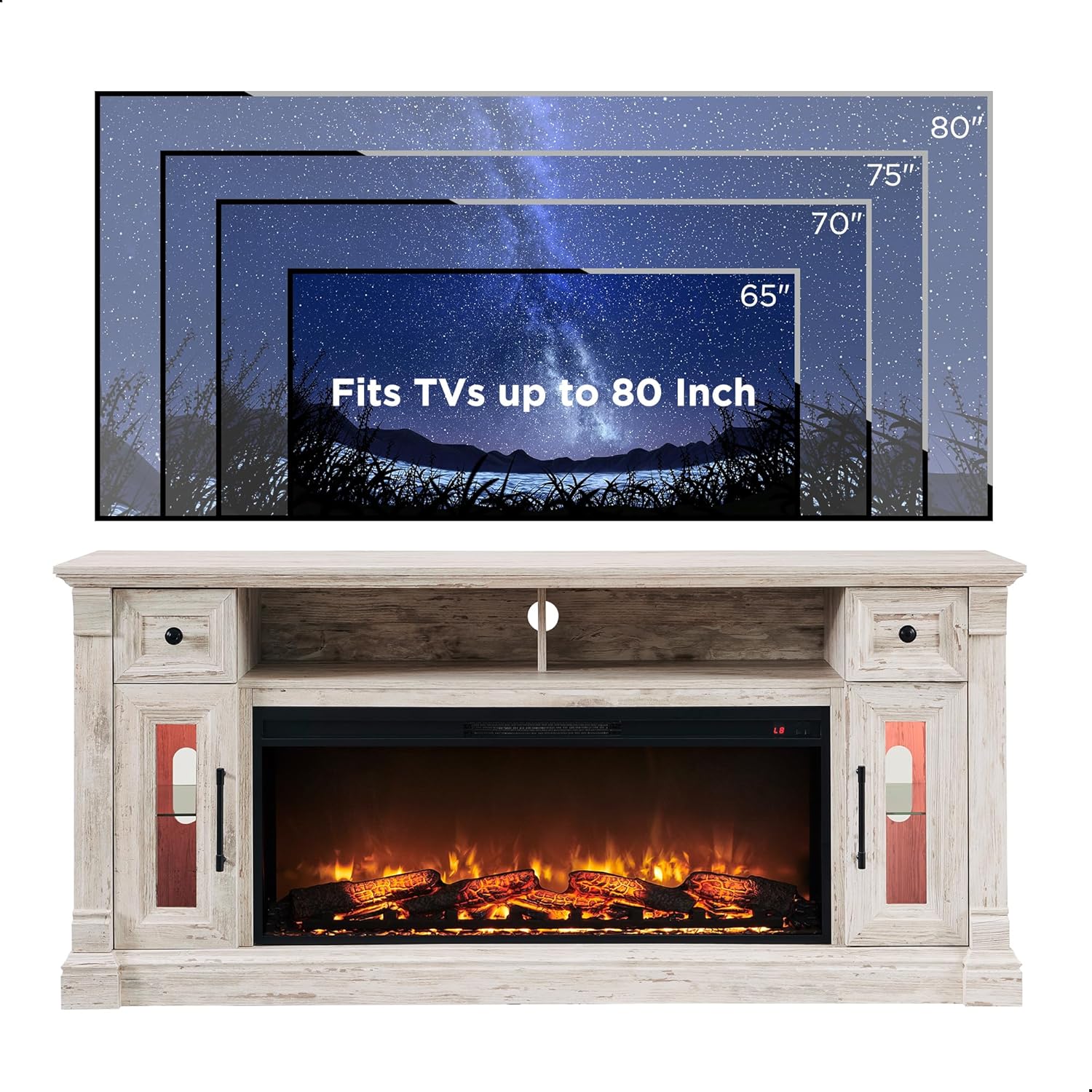 Farmhouse Fireplace TV Stand for 80 Inch TVs