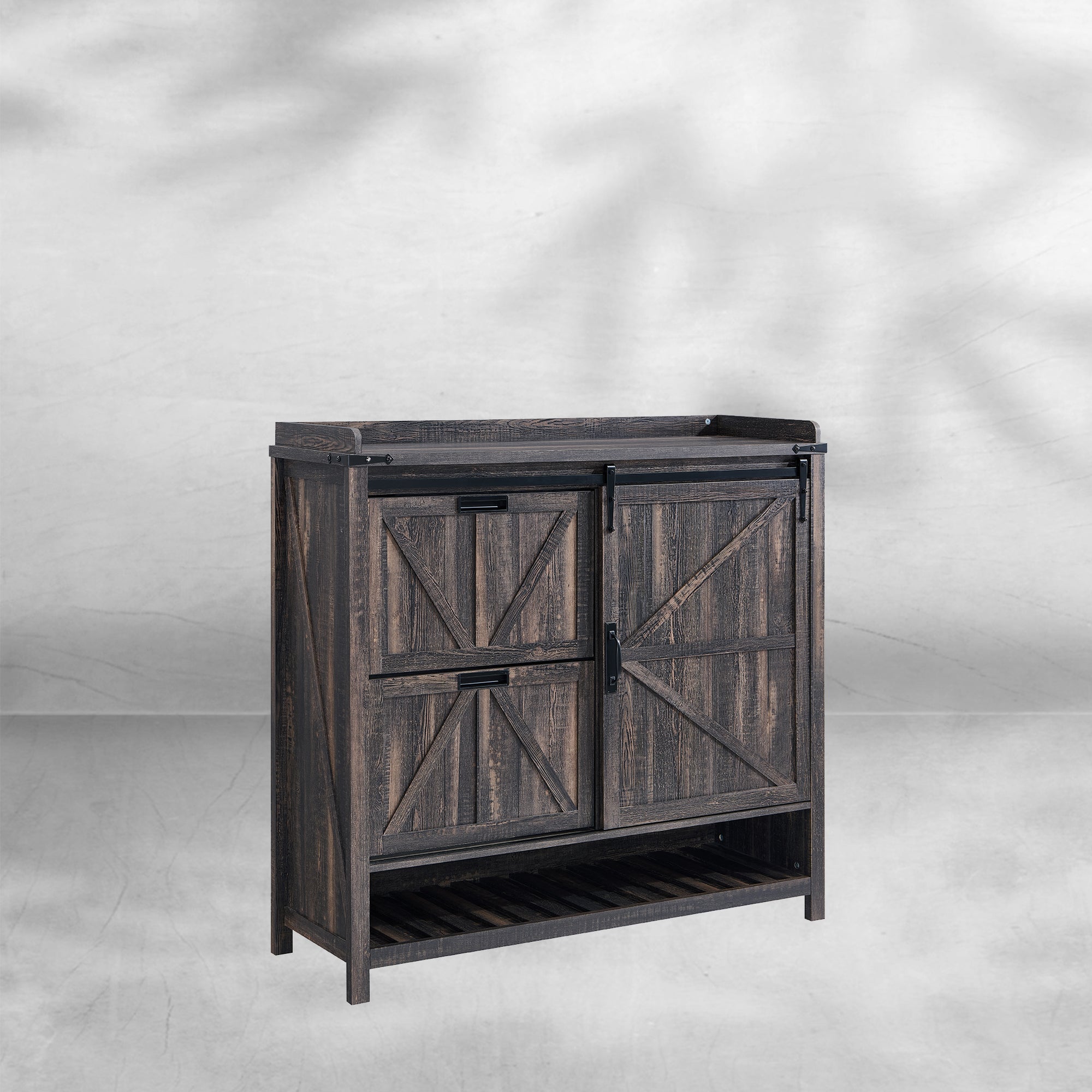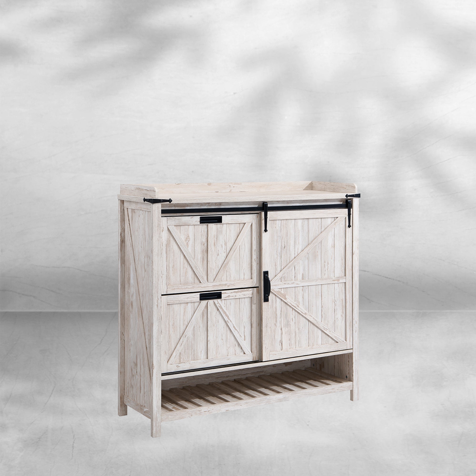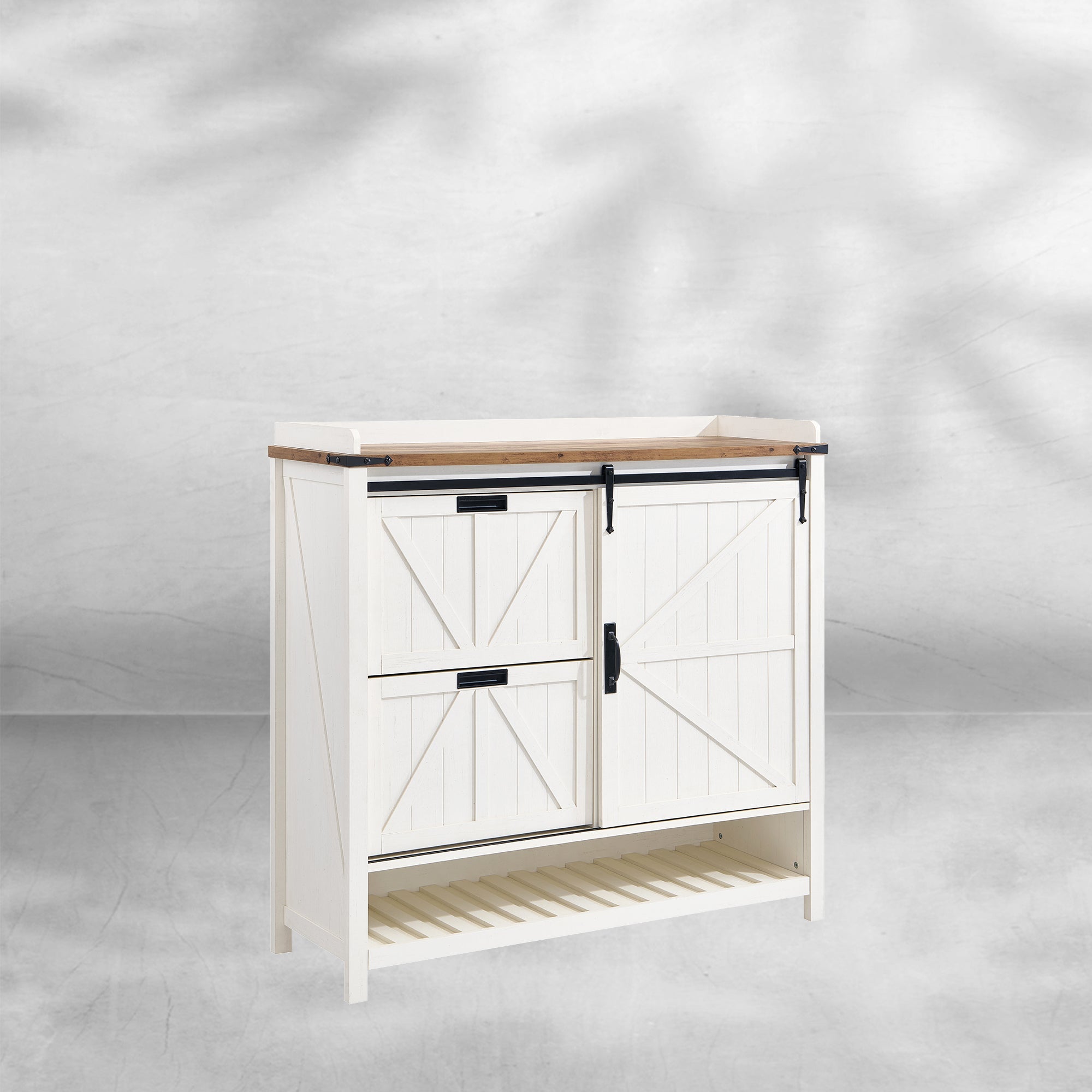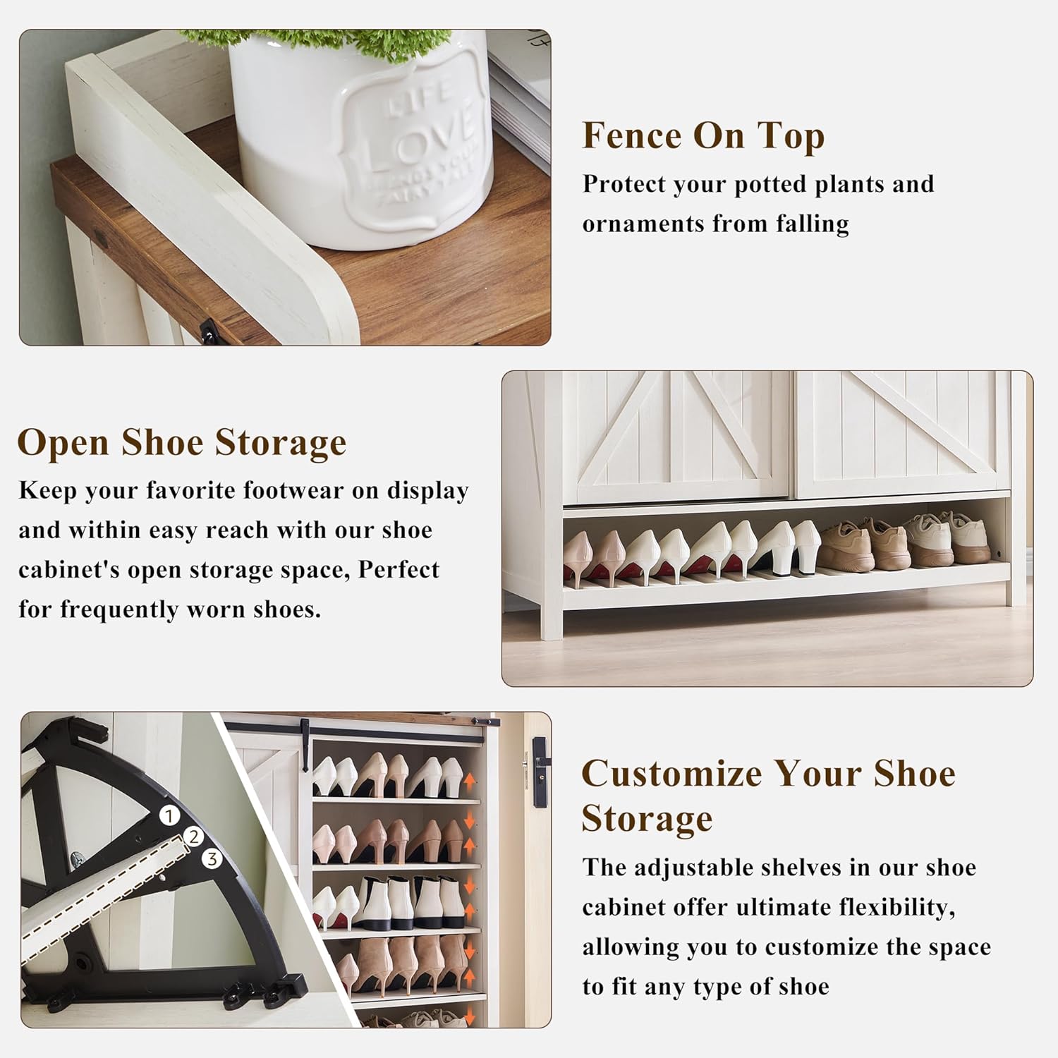 Farmhouse Shoe Storage Cabinet - 2 Flip Drawers and Sliding Door