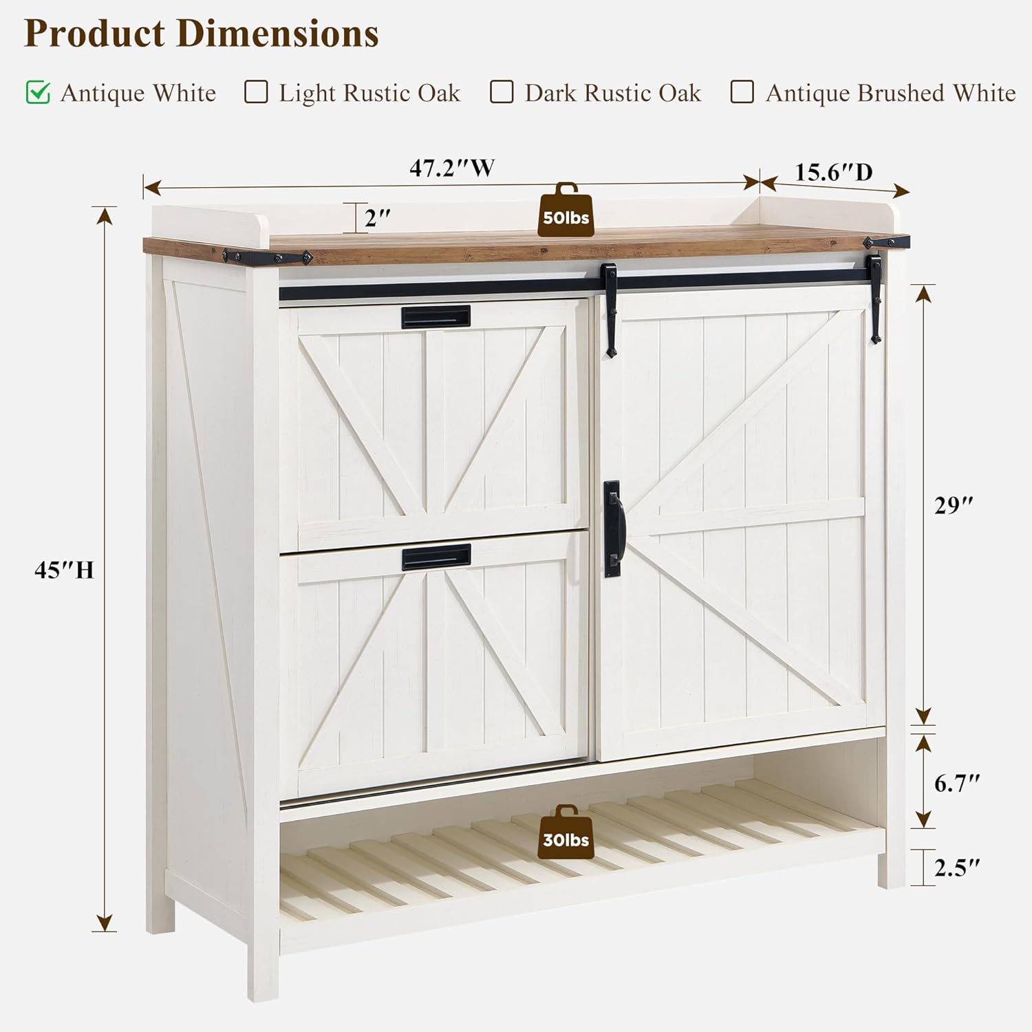 Tidy up your entryway with the OKD Farmhouse Shoe Storage Cabinet. This freestanding rustic cabinet features two flip drawers and a sliding door. It offers hidden storage, keeping your shoes neatly organized and out of sight. Its antique white finish adds a touch of farmhouse charm to any home.