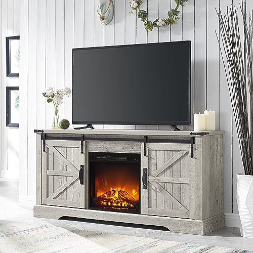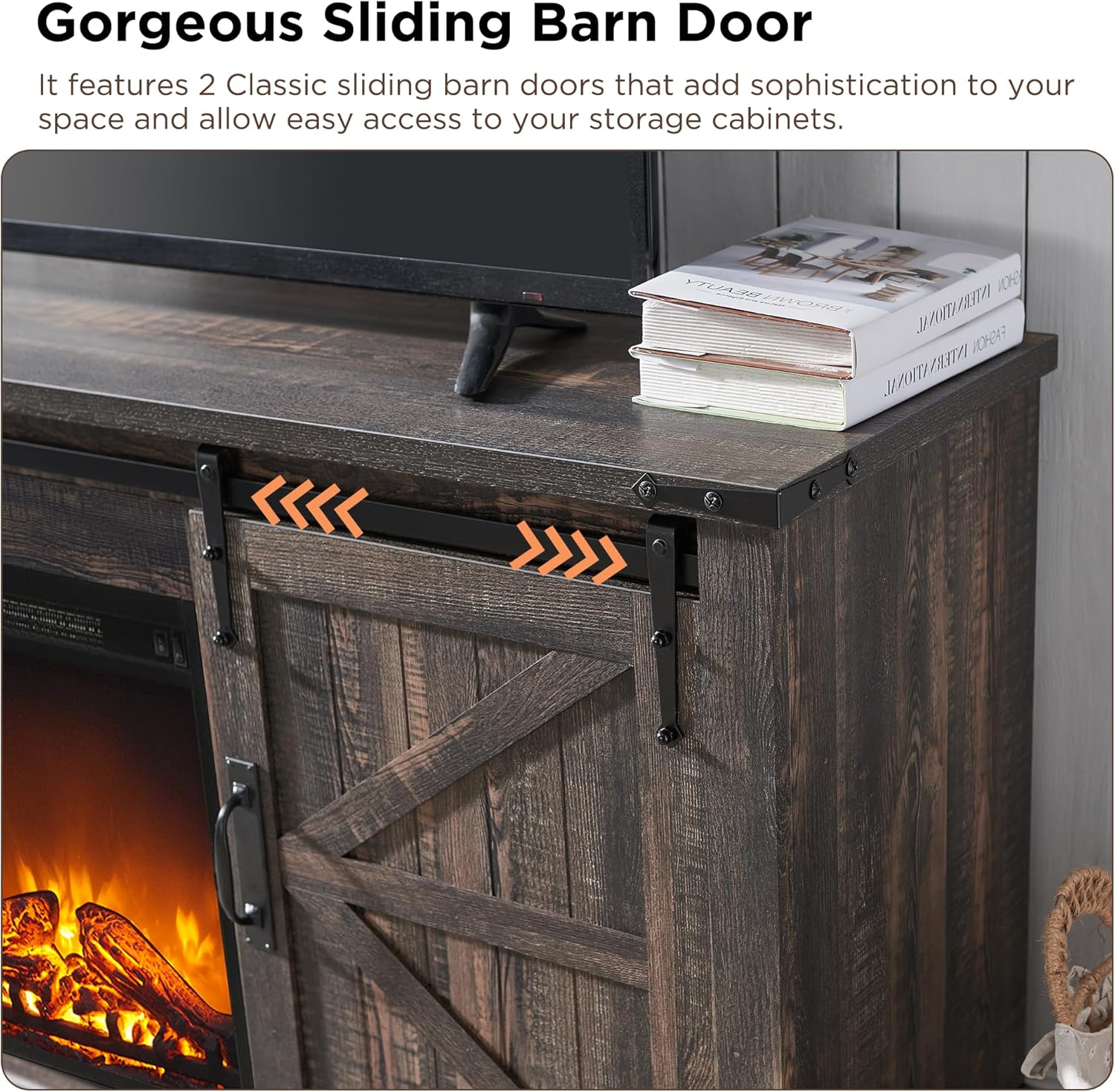 Farmhouse TV Stand with Fireplace for TVs Up To 65 Inch
