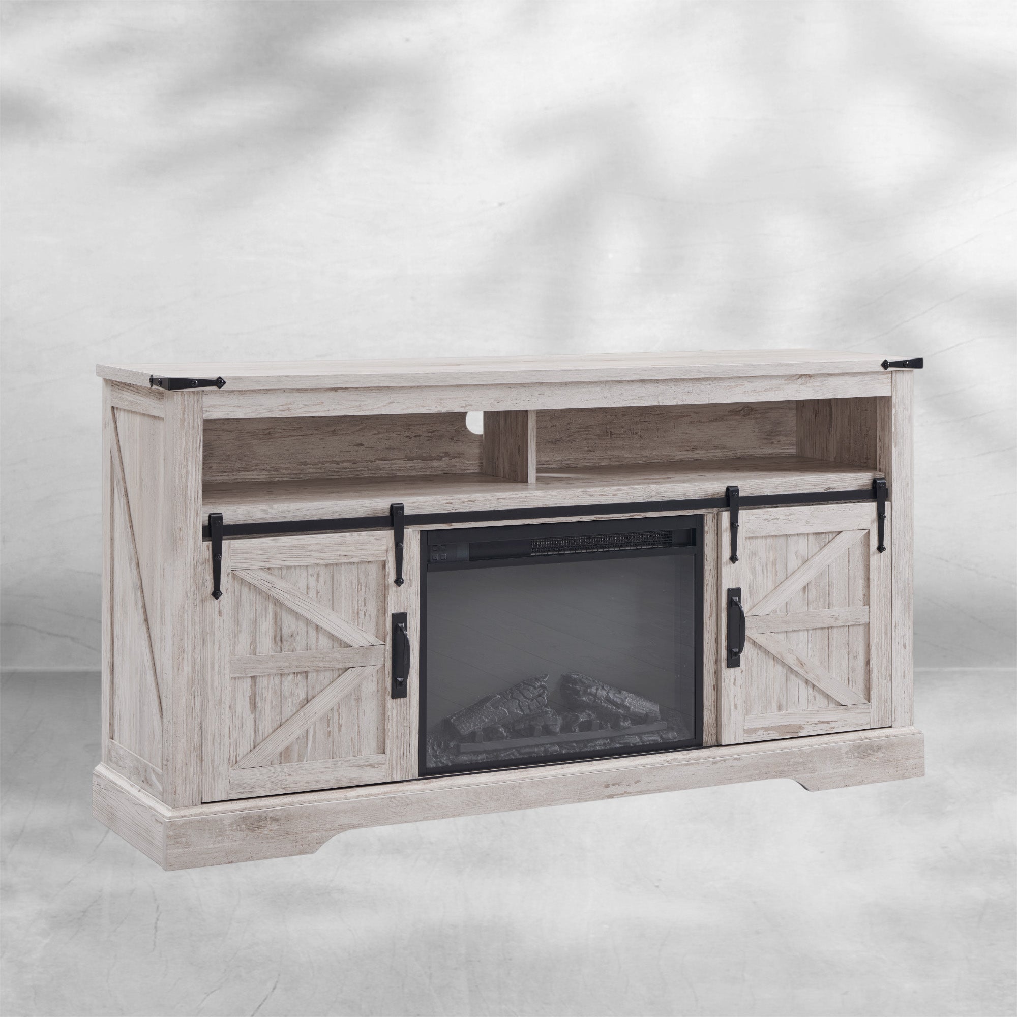 Get that cozy farmhouse charm with the OKD Fireplace TV Stand! Boasting a 23'' electric fireplace, this rustic media console adds warmth and style. The sliding barn door provides easy access to your media, while the highboy design offers ample storage. Perfect for TVs 65+ inches, it's an antique white centerpiece for any living room.