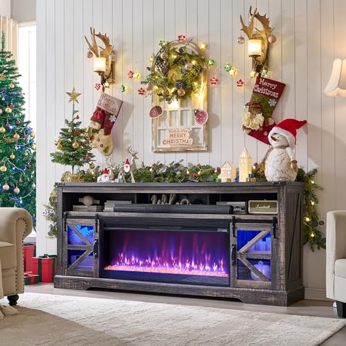 Fireplace TV Stand for 85" TV, Farmhouse Entertainment Center