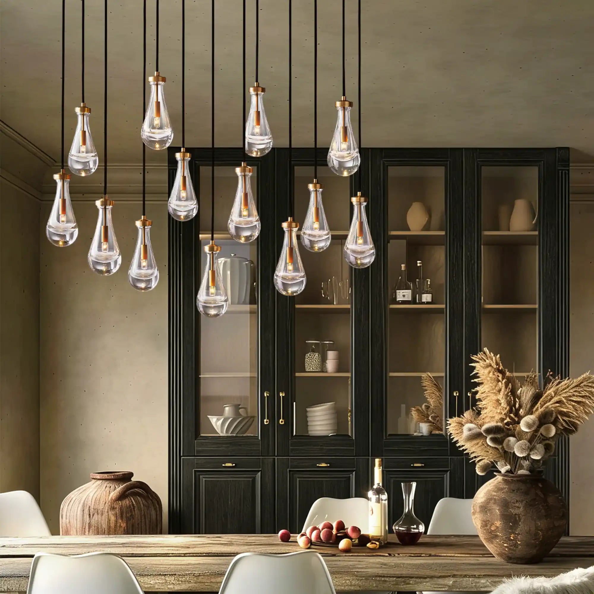 The lightings from our Raindrop collection is a captivating piece with raindrops lightings that look like raindrops. Handcrafted from blown glass and a metal frame, this fixture is lit to refract a rich light effect, creating the illusion of underwater lighting.