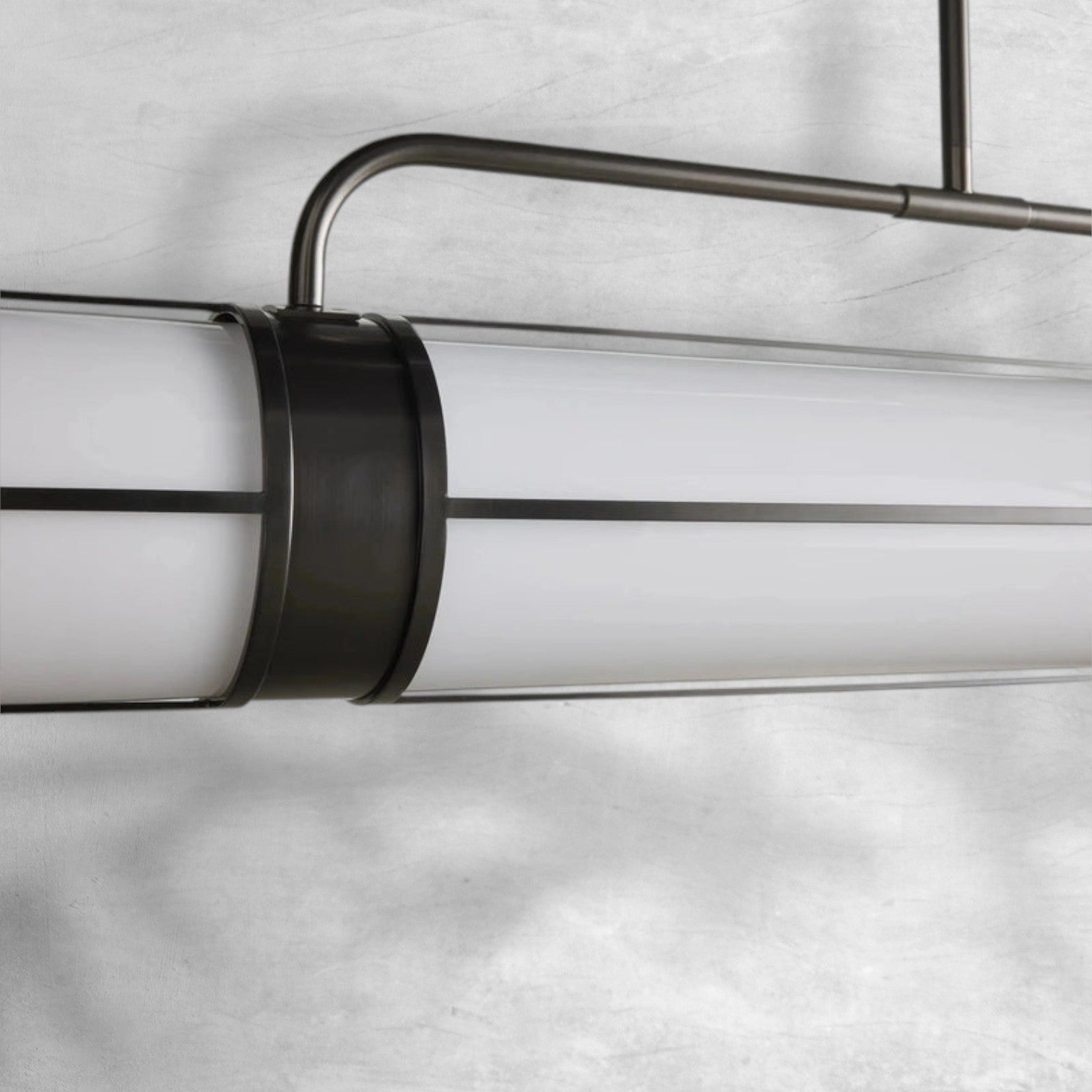 - Modern sophistication ideal for dining tables and kitchen islands—our exclusive Remming Lighting Collection features linear milk acrylic tubes and contrasting finish details that come together to create an elevated, industrial-chic aesthetic.