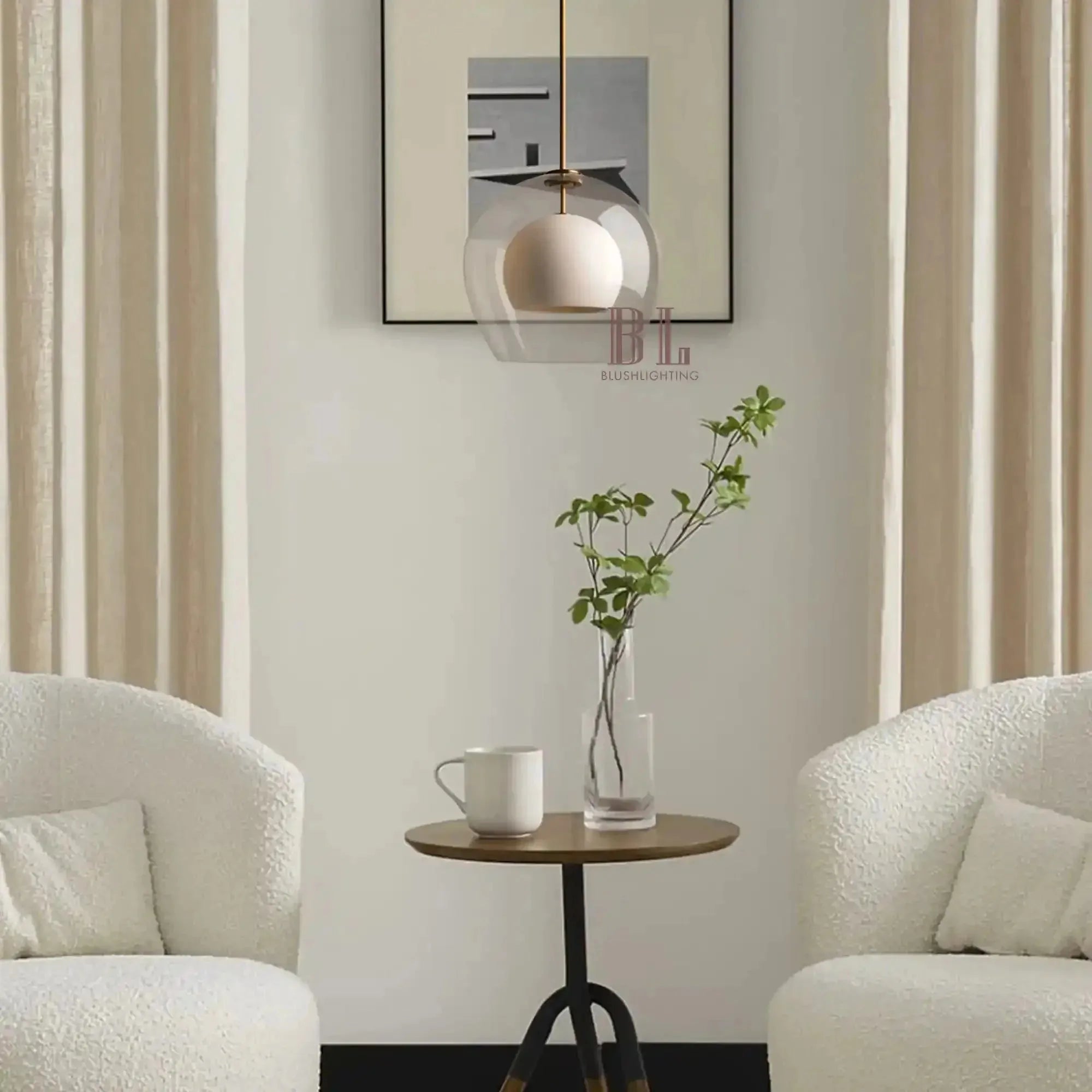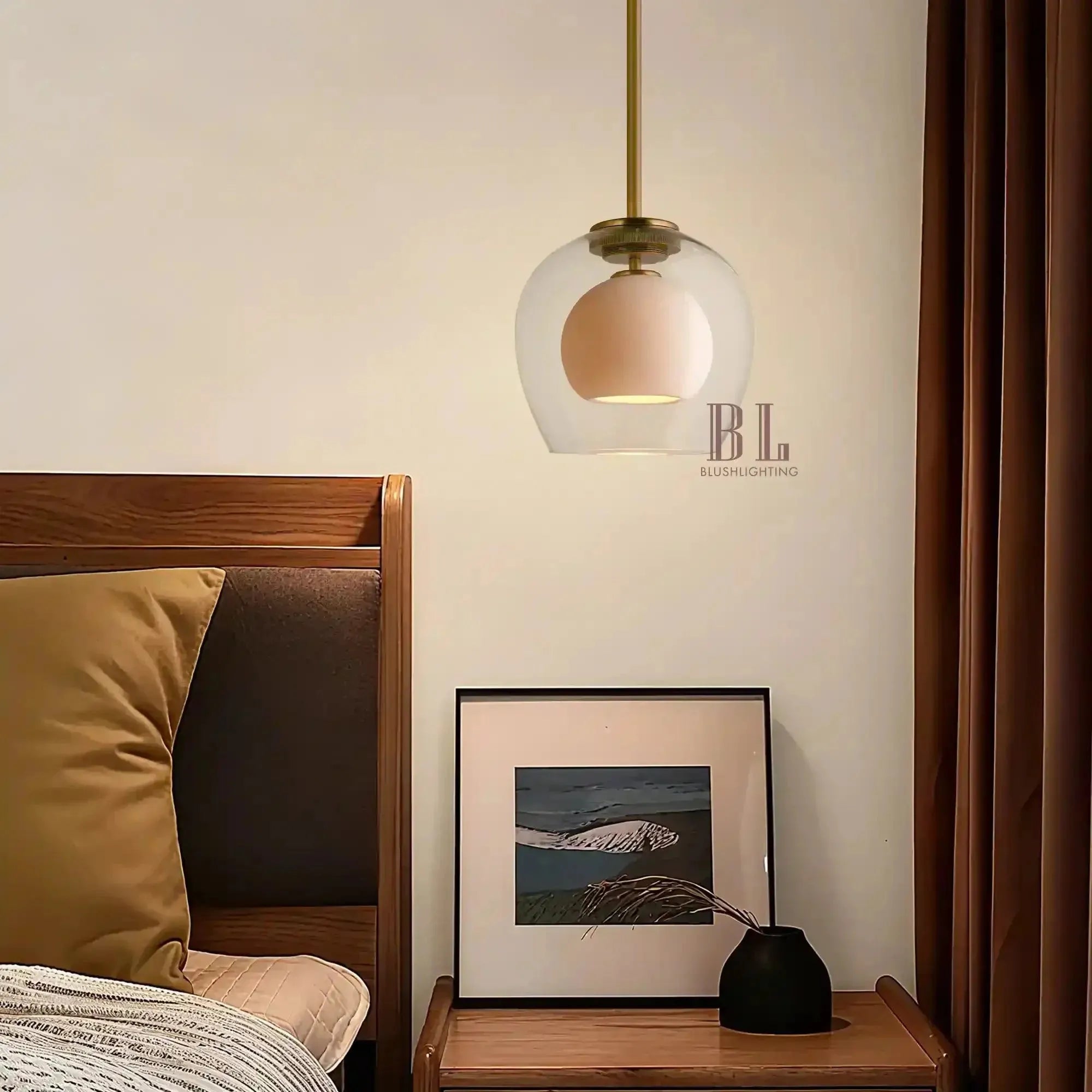 Our Romy Pendant features a matte porcelain core cocooned in a clear glass dome, creating a unique double-layered pendant that filters light into a warm, sculptural glow. Finished with a brass suspension, Romy turns everyday illumination into refined, thoughtful design moments.
