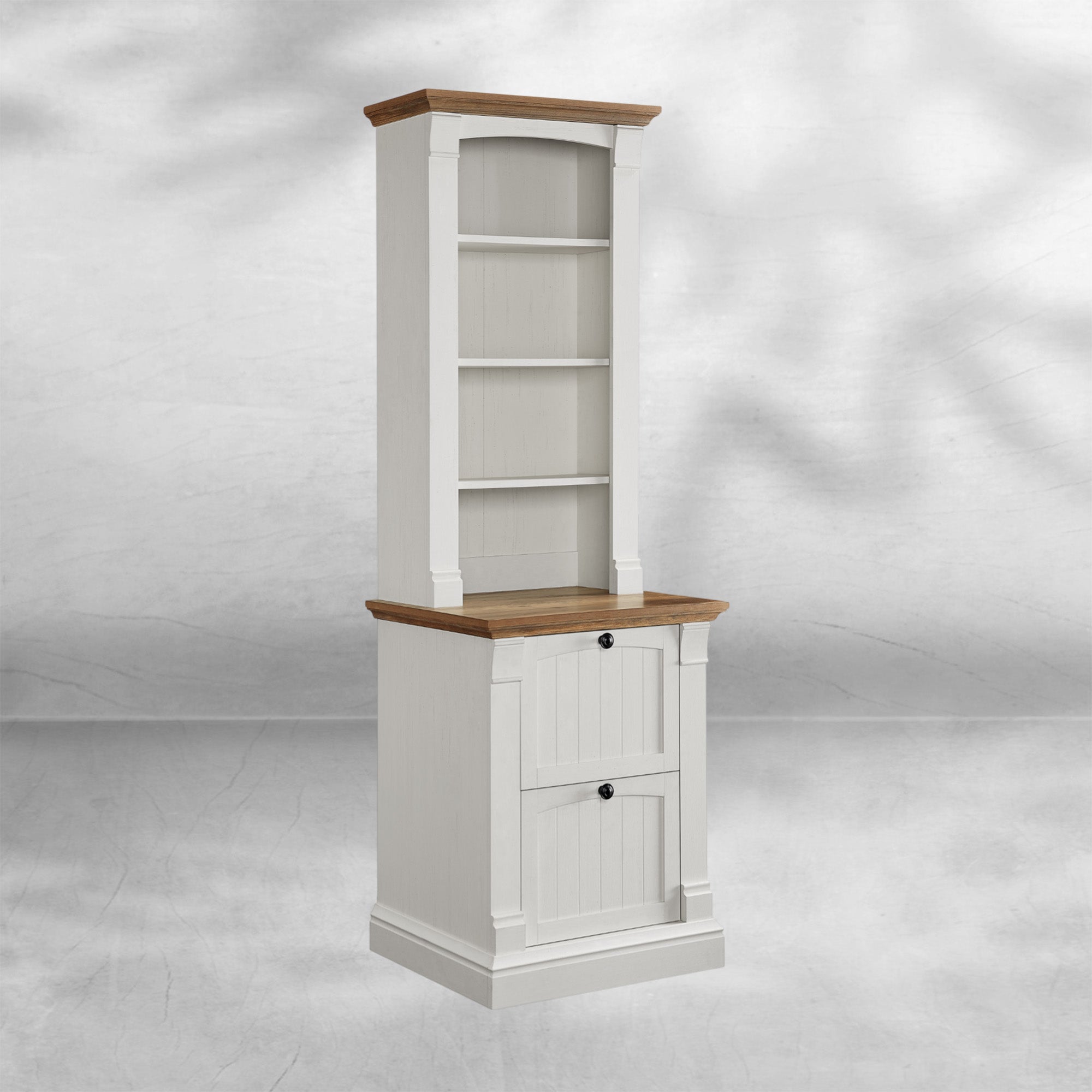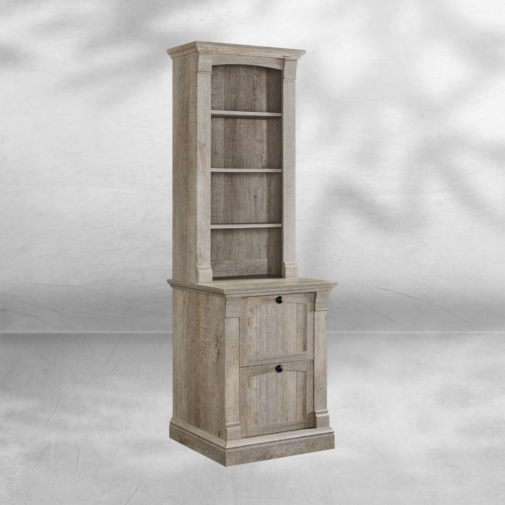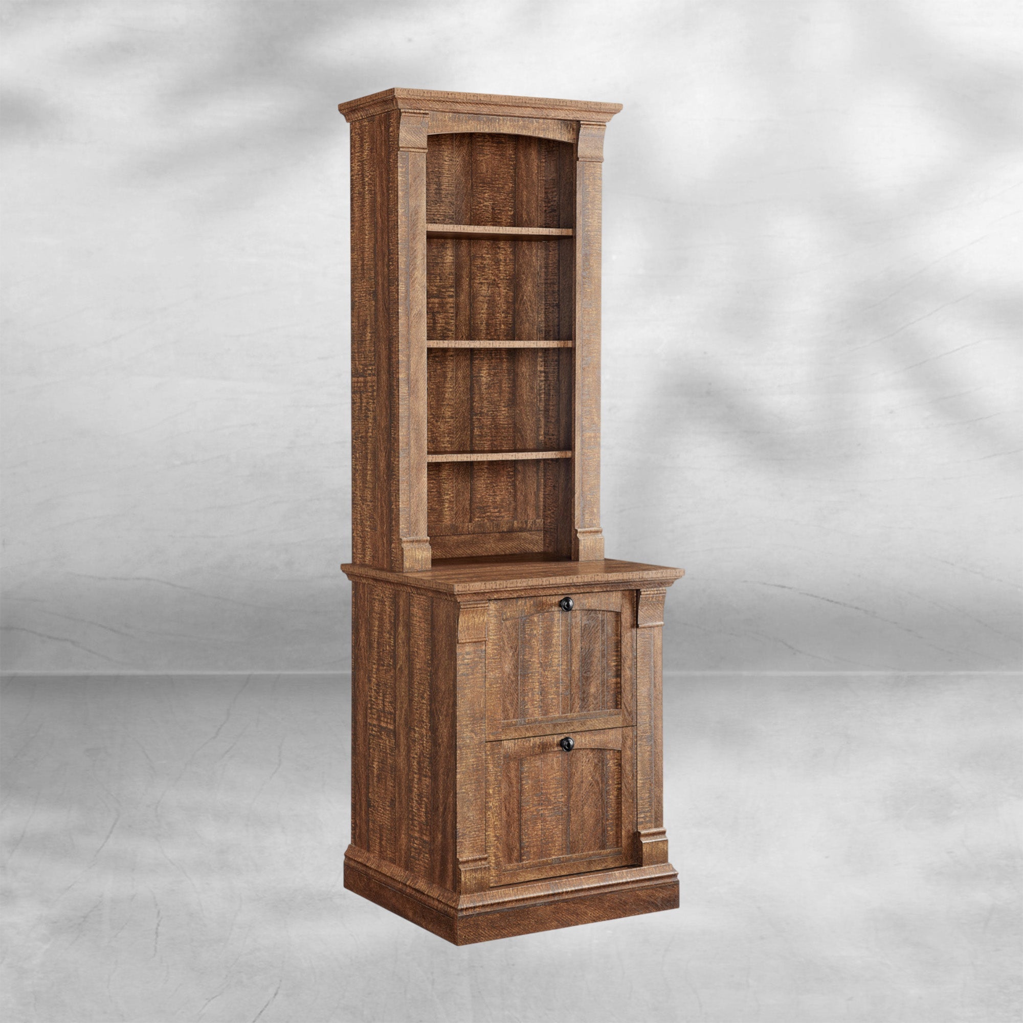 Rustic Farmhouse 72" Tall Bookcase with Adjustable Shelves & Drawers