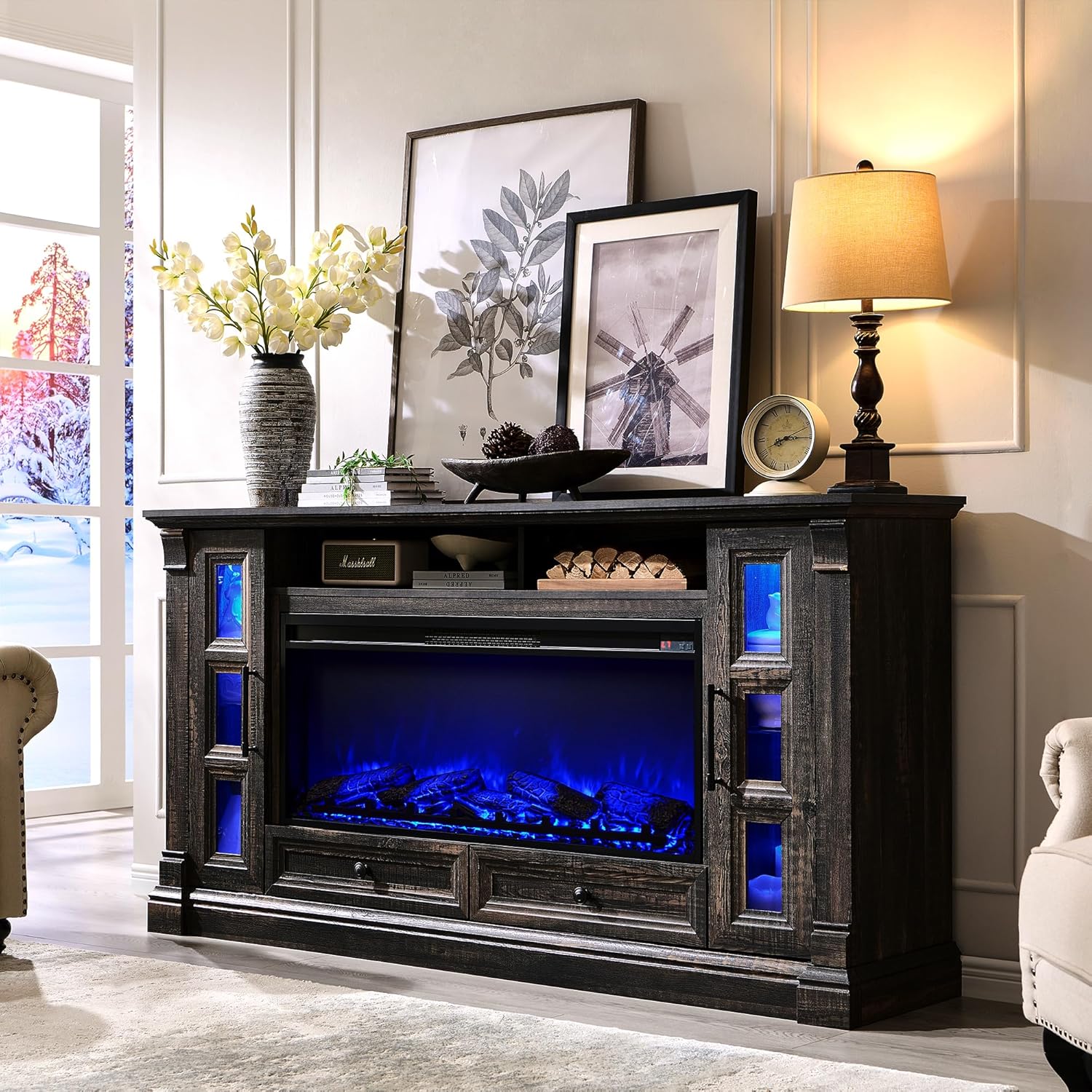 Rustic Farmhouse Fireplace TV Stand - Fits Up to 80 Inch TV