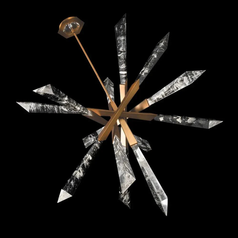 Heavenly with an edgy expression, the Solitude LED Pendant Light from Arialamps comes across dramatic yet ethereal, demonstrated in its organically shaped optic haze crystal spears. Held together by sleek metal scaffolding, this energy-efficient pendant light creates a mesmerizing galactical aesthetic to interiors.