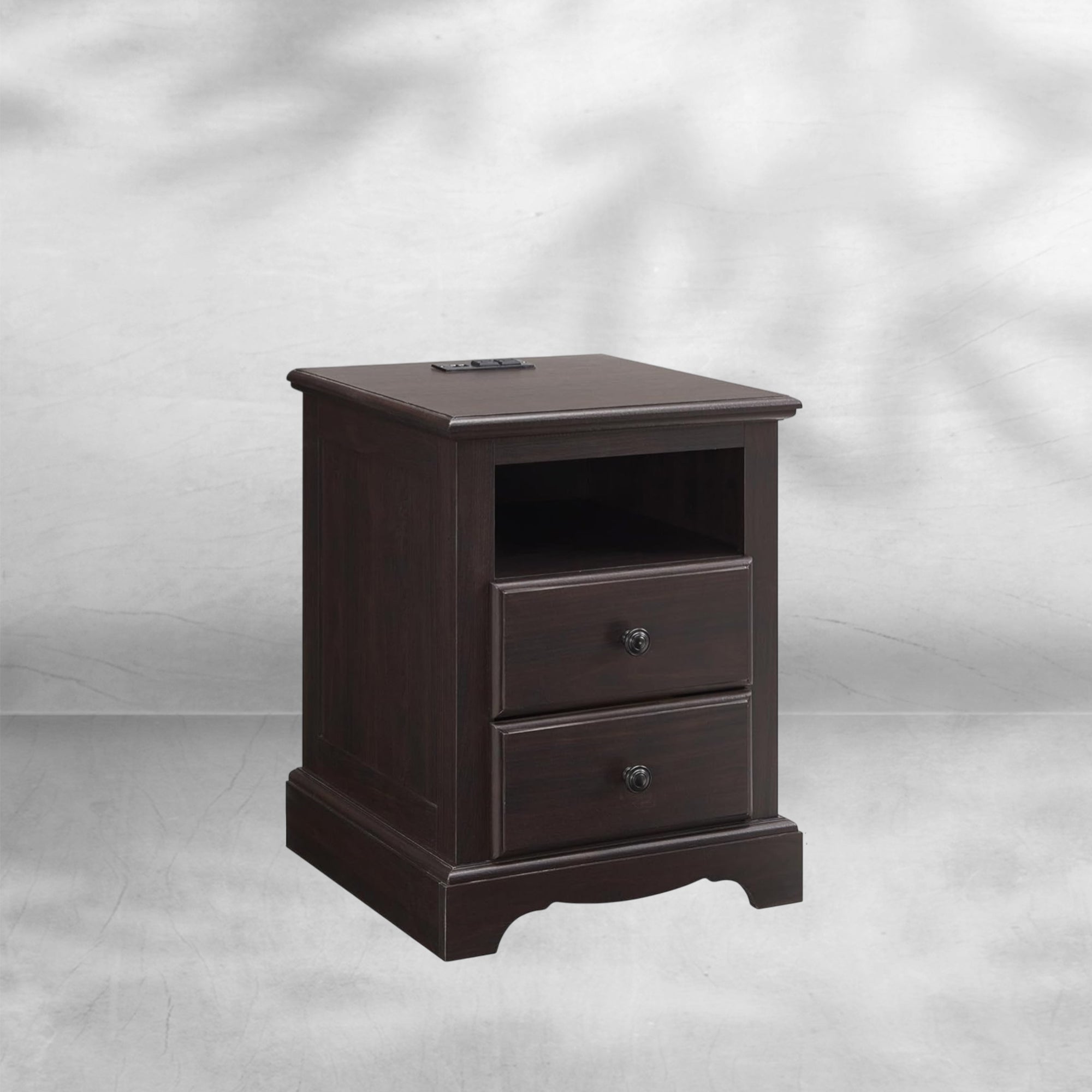Espresso Nightstand with Charging Station and Two Drawers