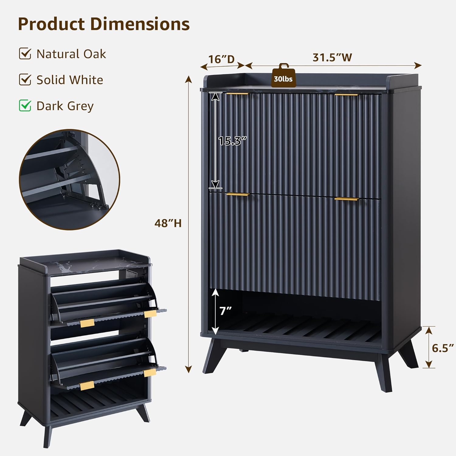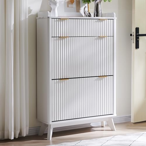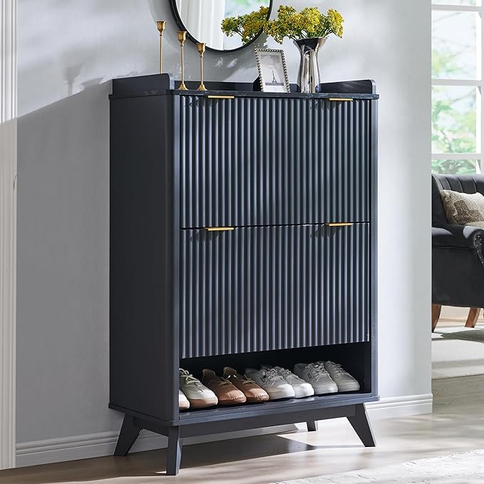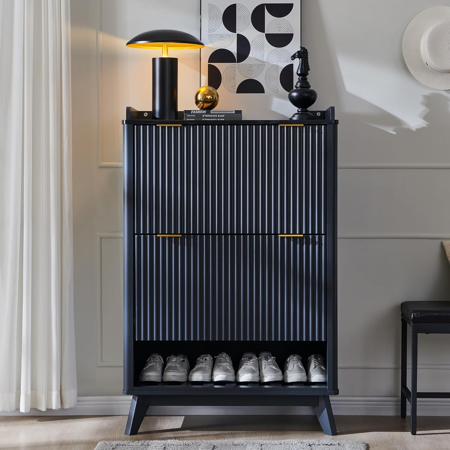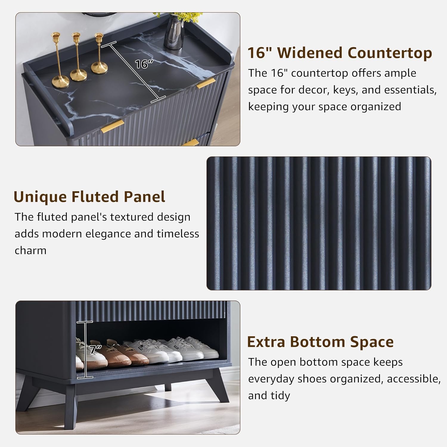 Fluted Shoe Storage Cabinet 32" Slim Stylish Entryway Organizer