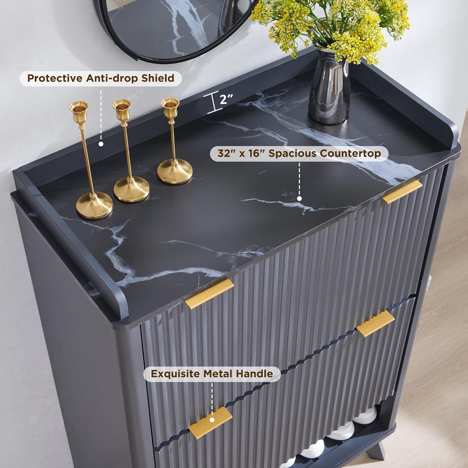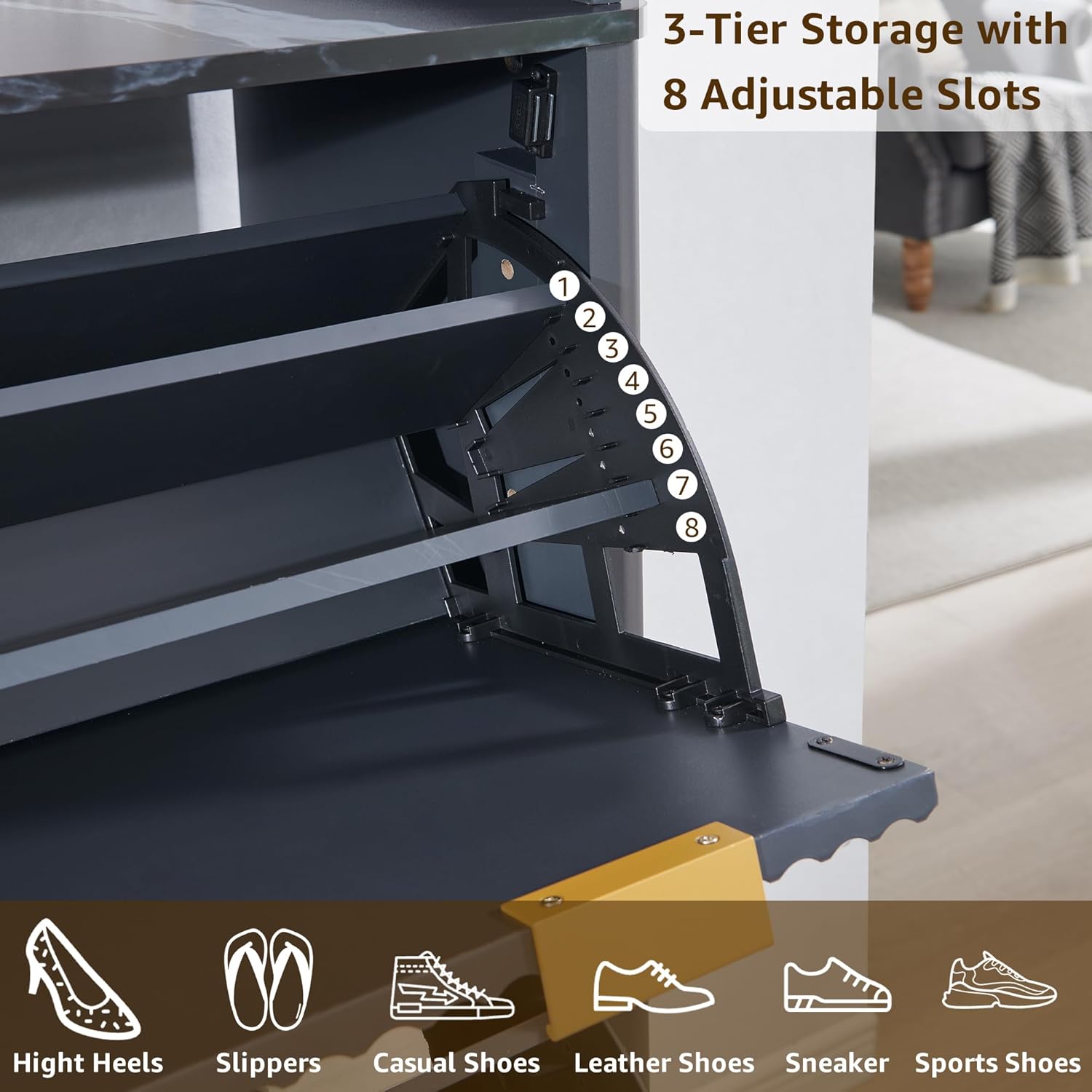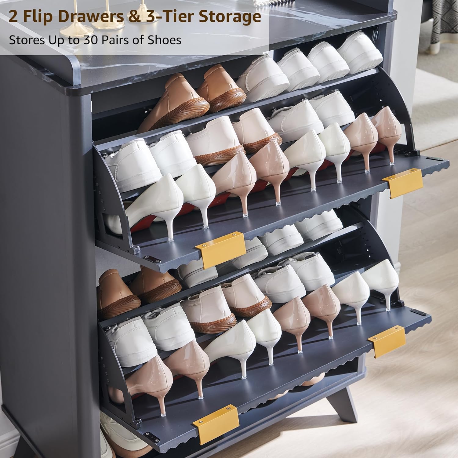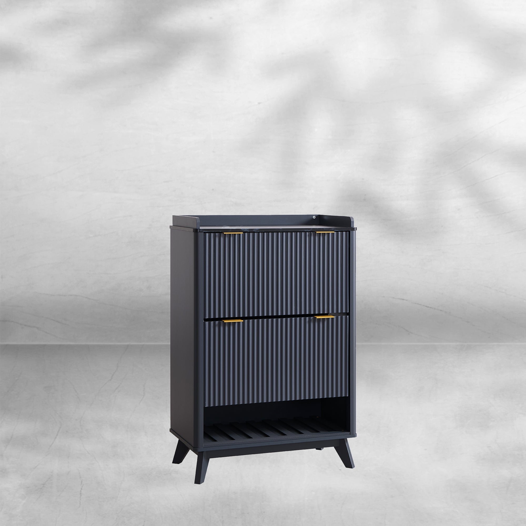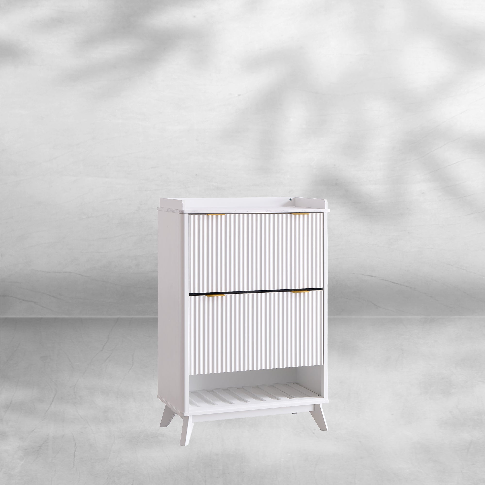 Organize your shoes with a touch of elegance. This fluted shoe storage cabinet features a sleek, curved profile design. The two flip drawers offer easy access while maximizing space. Perfect for entryways and hallways, it combines functionality and modern style.