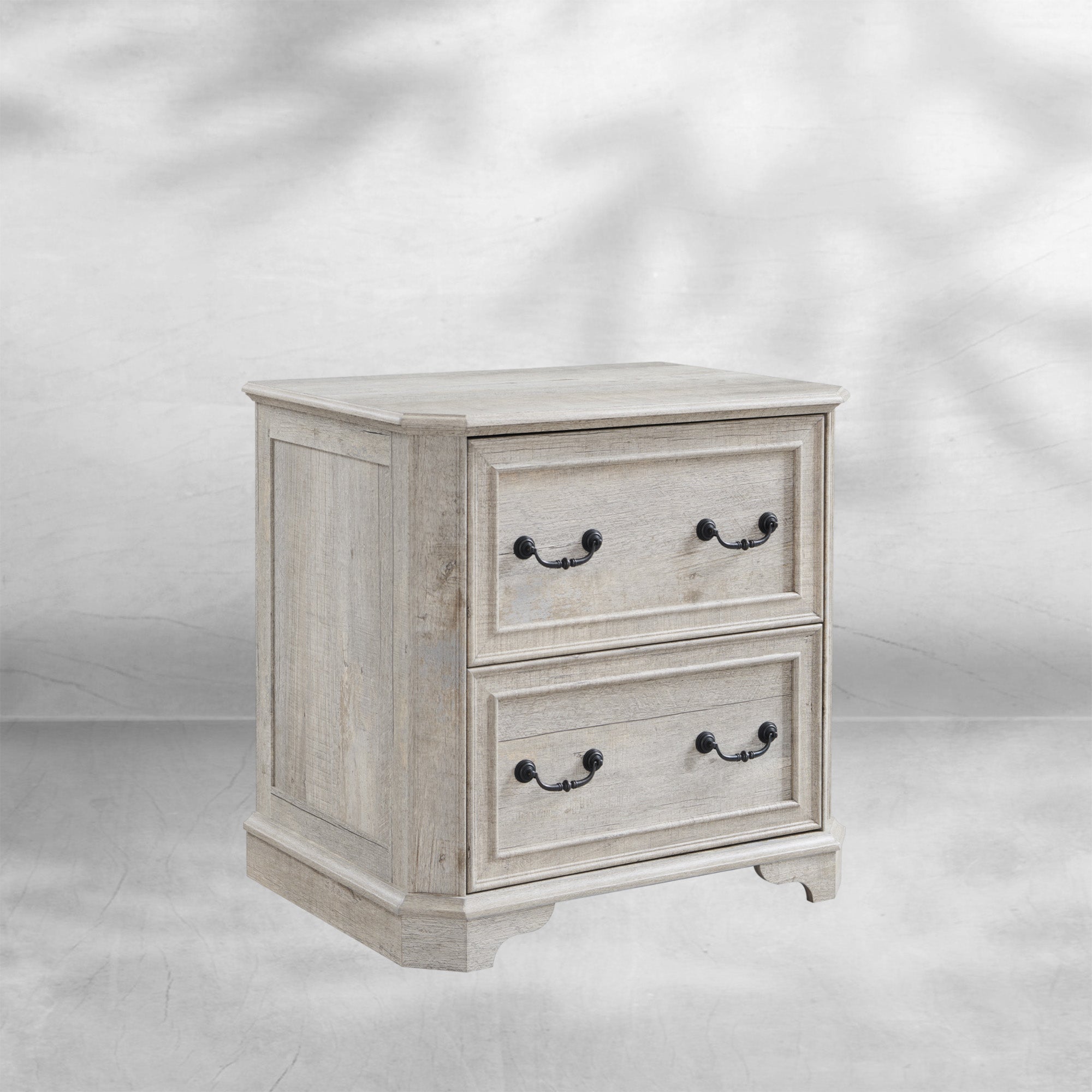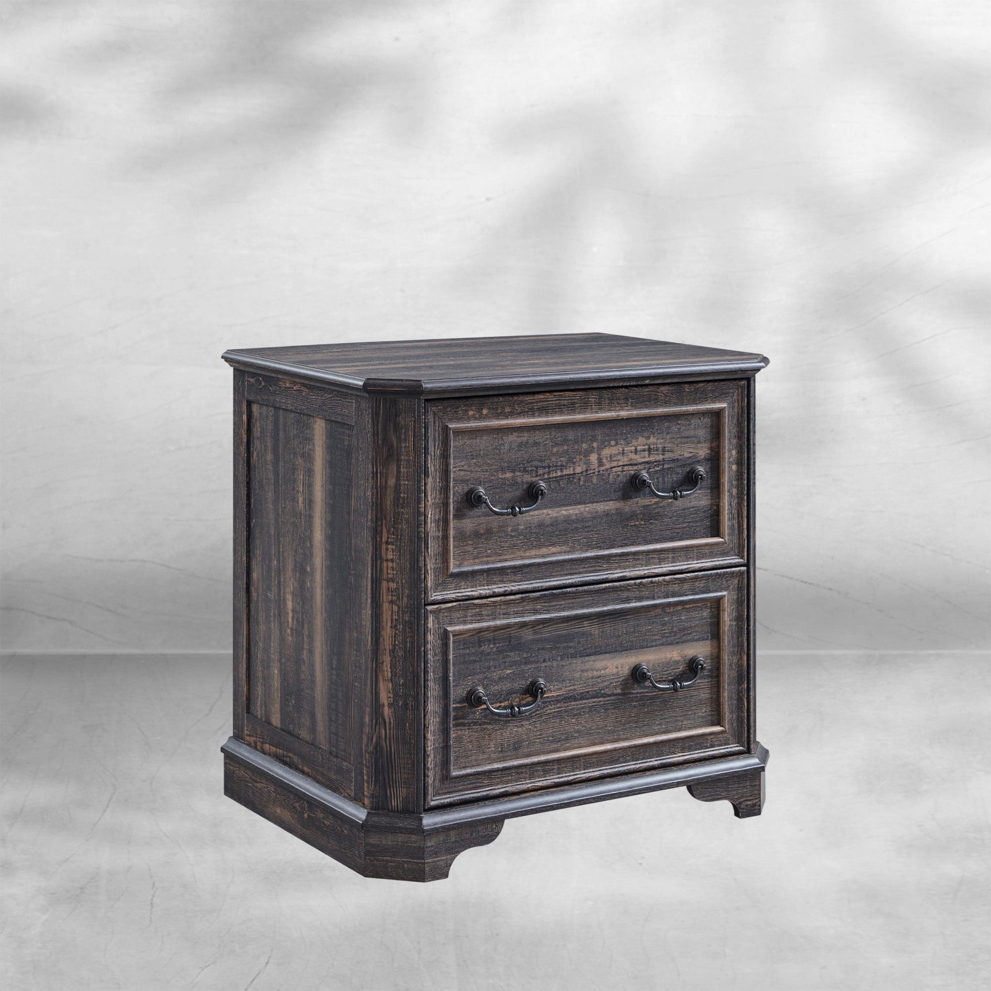 Rustic Oak 2-Drawer File Cabinet with Extended Desktop