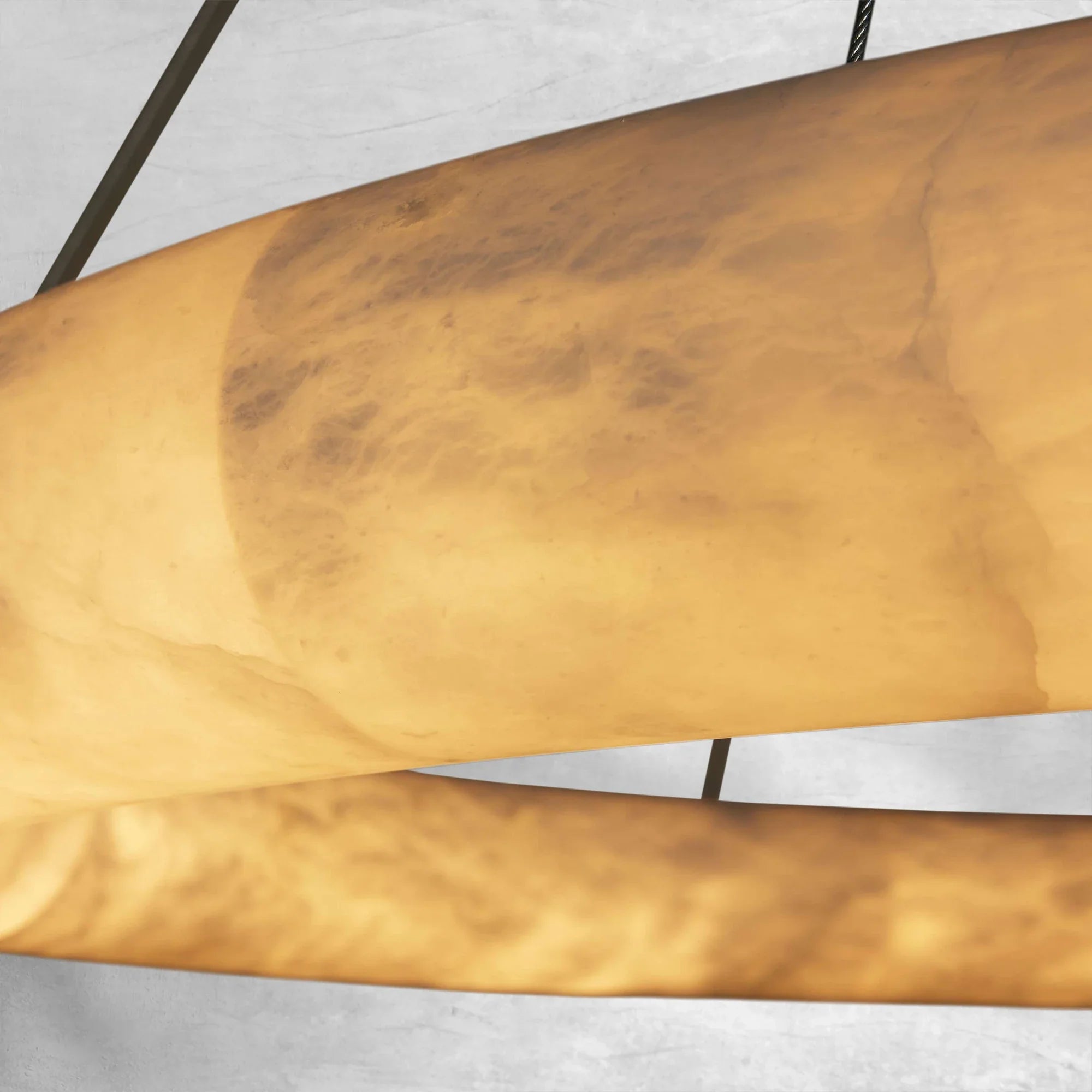 - Crafted from ethereal Spanish alabaster, our Halima Lighting Collection glows from within—its integrated LED lights casting a warm, diffused radiance through the stone’s natural veining. Suspended by minimalist cables, Talima’s sleek design floats effortlessly overhead, blending timeless materiality with modern style.