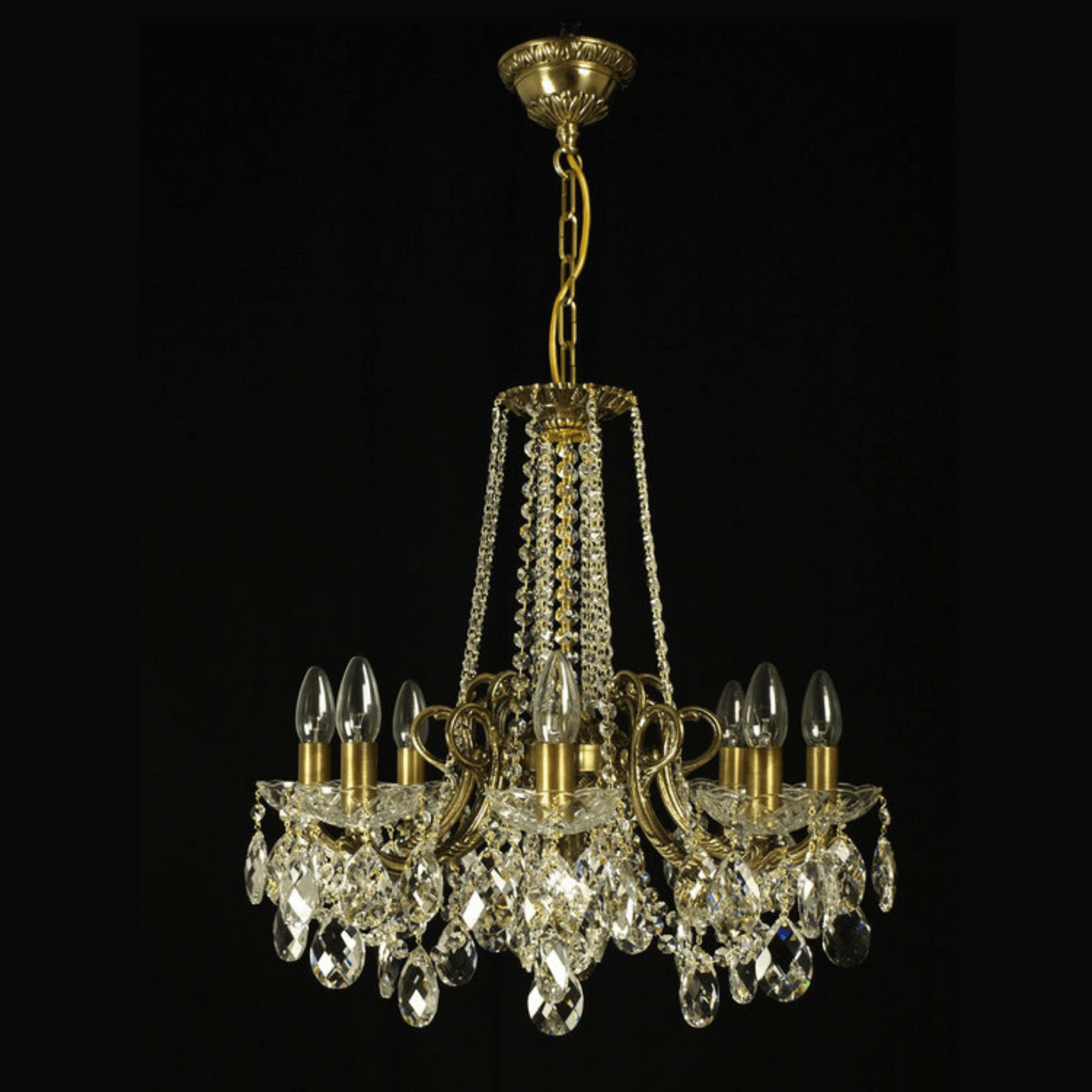Aria Taurus 8 Brass Crystal Glass Chandelier