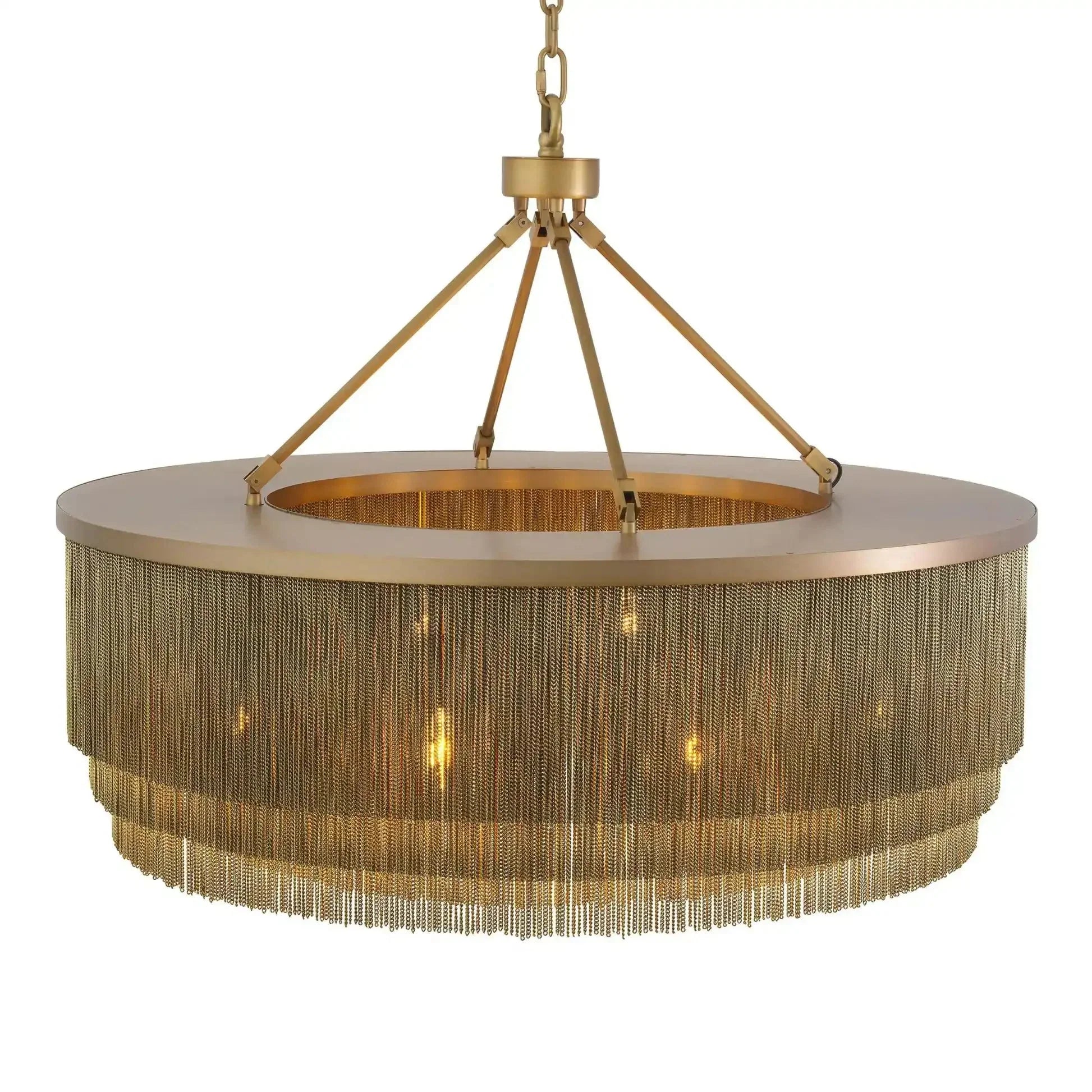 Add a touch of glamour and extravagance to your space with the Tissot L Chandelier. Inspired by the fringe flapper dresses of the 1920s, this chandelier features four rows of thin chains, evoking the luxurious style of The Great Gatsby era. Perfectly suited for any modern or vintage-inspired interior, it radiates sophistication and elegance.