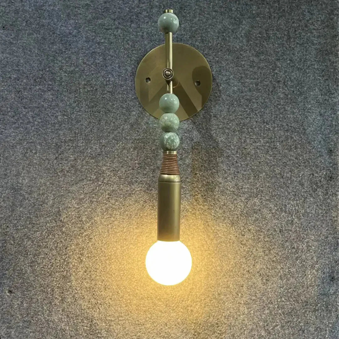 Bringing archaeological interest to lighting, the Toam sconce is inspired by the semi-precious stones found on statues in the ancient city of Persepolis. Marble are pierced by a finely fluted brass pin, which is affixed to a bound brass structure. As elegant as a pair of earrings, this jewel-like piece would look impactful as a pair.