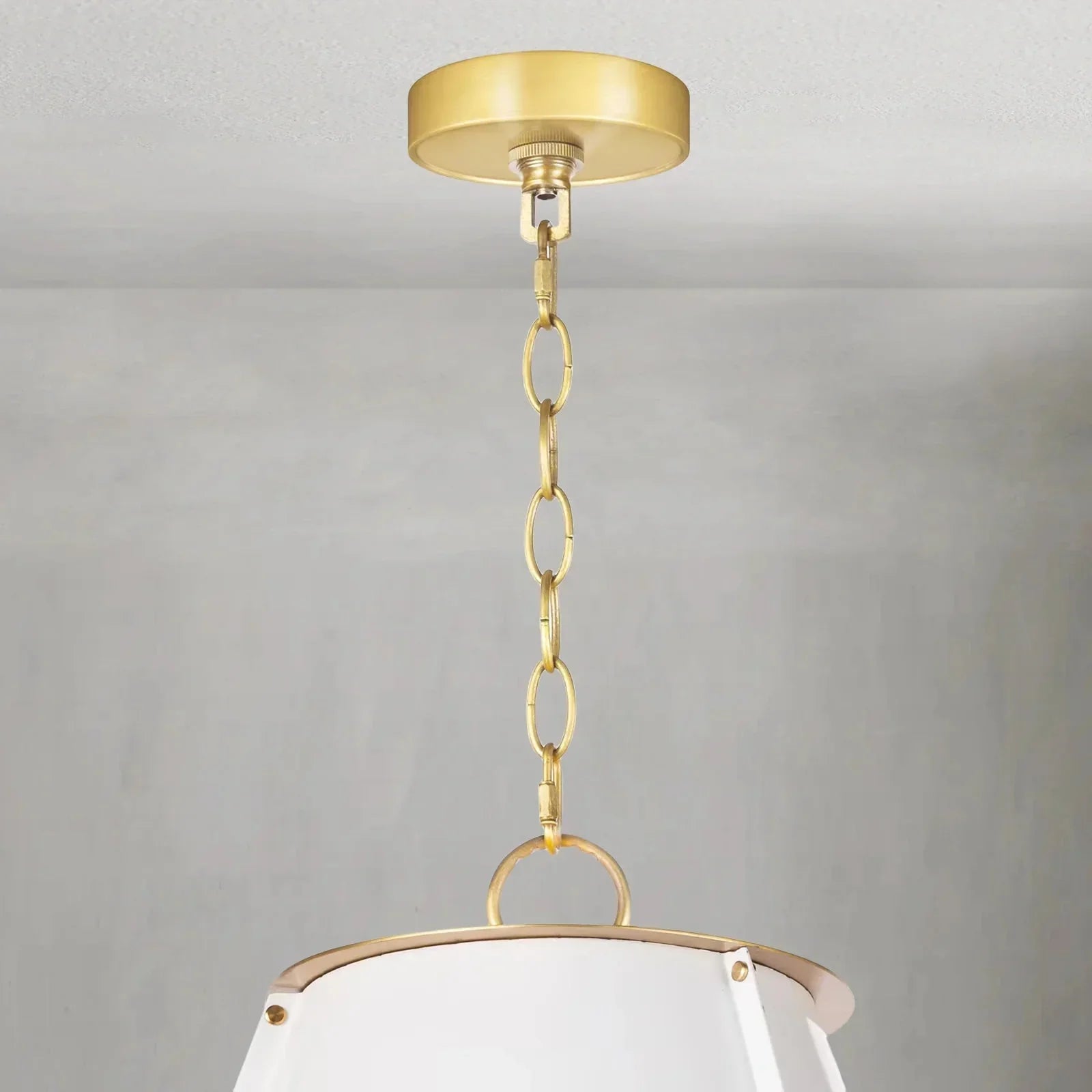 With its simple cone shape, the Vertelle Maid Chandelier is trimmed with natural brass detailing that gives it a modern industrial flair. The diffuser shade creates a soft and inviting glow, making it ideal for providing ambient light above a kitchen island.