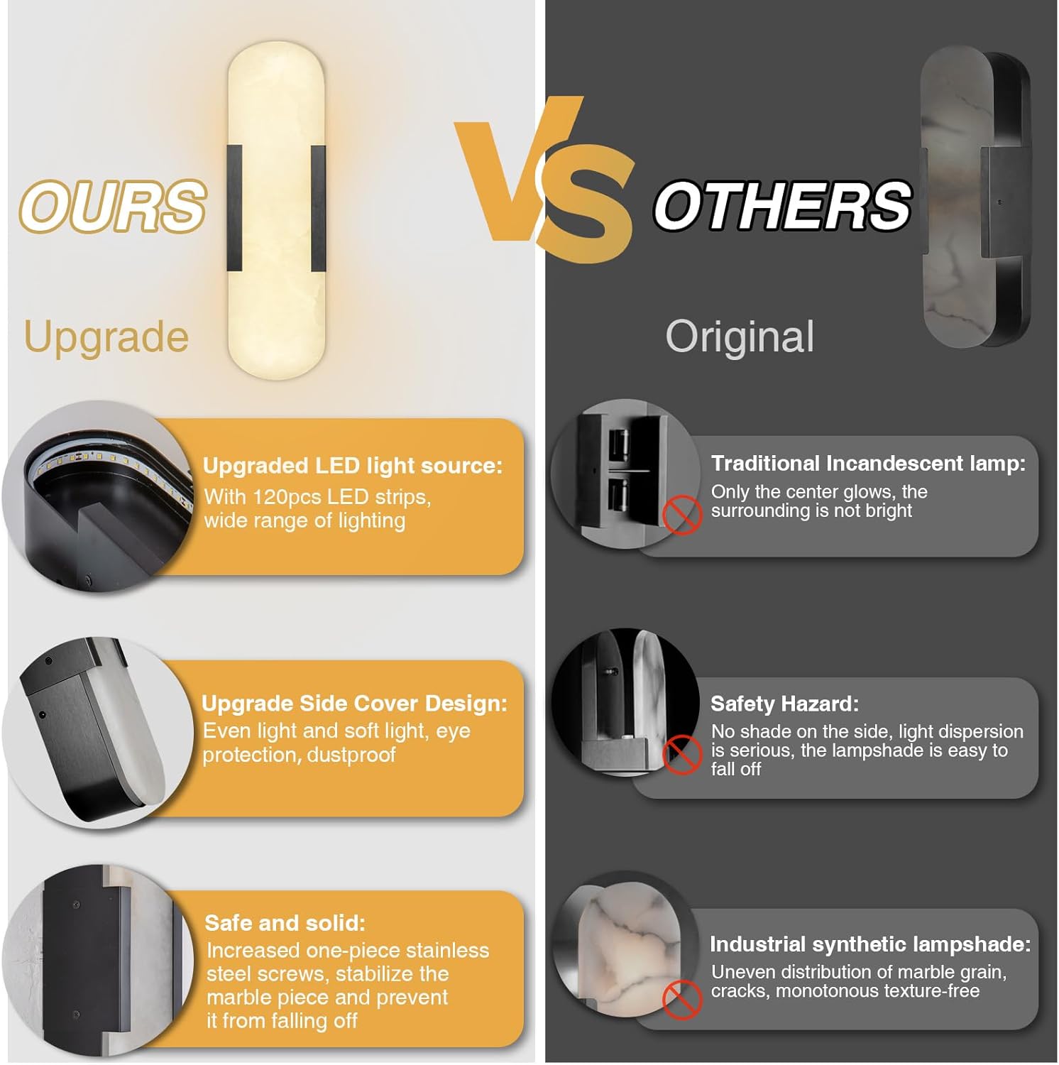 Add a touch of elegant marble to any room with these sleek wall sconces. The natural alabaster stone diffuses a soft, glare‑free glow that feels both modern and timeless. Designed with a sturdy matte‑black metal frame, they fit perfectly above mirrors, in hallways, or beside a bedside. Easy to install and dimmable, they bring cozy warmth to every corner of your home.